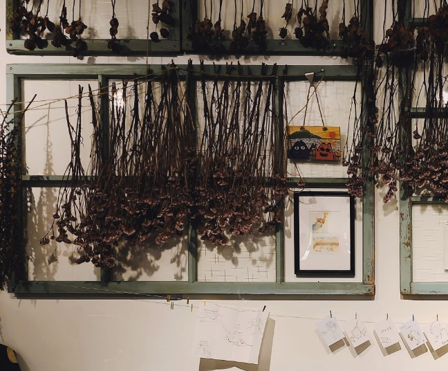 ▲咖啡廳內別有洞天,淡水社大也有不定期的班級展覽於店內