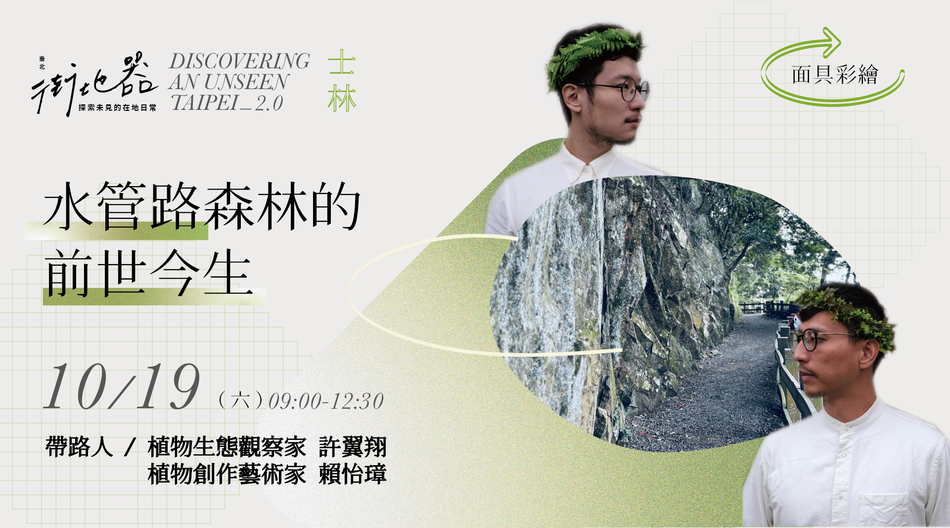 陽明山為臺灣第一座國家公園,這座國家公園裡有著與自然與人類互相影響的痕跡。自清領時期開始,歷經日治、戰後時期,再到現在本土環保意識抬頭,不同時期的人們對待山林資源的應用有著截然不同的選擇。是什麼樣的原因造就了現今天母古道水管路綠意盎然的現況?邀請植物觀察家及藝術家—許翼翔與賴怡璋,帶大家親身走一回,了解隱藏在山林植物裡的小秘密!