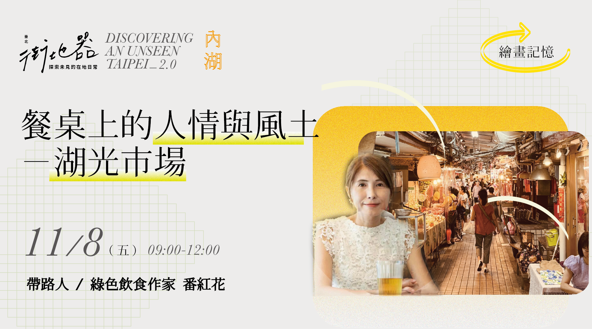 (※本場次因颱風延期,報名請選擇「延期辦理|場次3:內湖《市場篇》餐桌上的人情與風土-湖光市場」※)