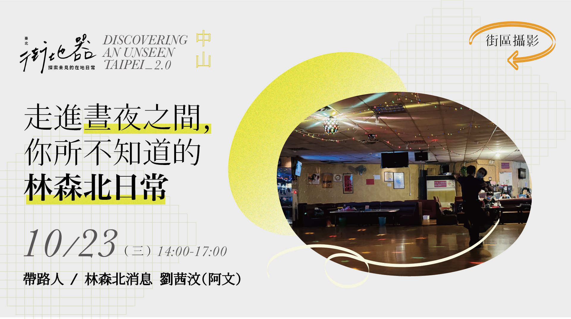 (※本場次已結束※) 場次7 ✦ 中山 ❰ 街區篇 ❯ 走進晝夜之間,你所不知道的林森北日常