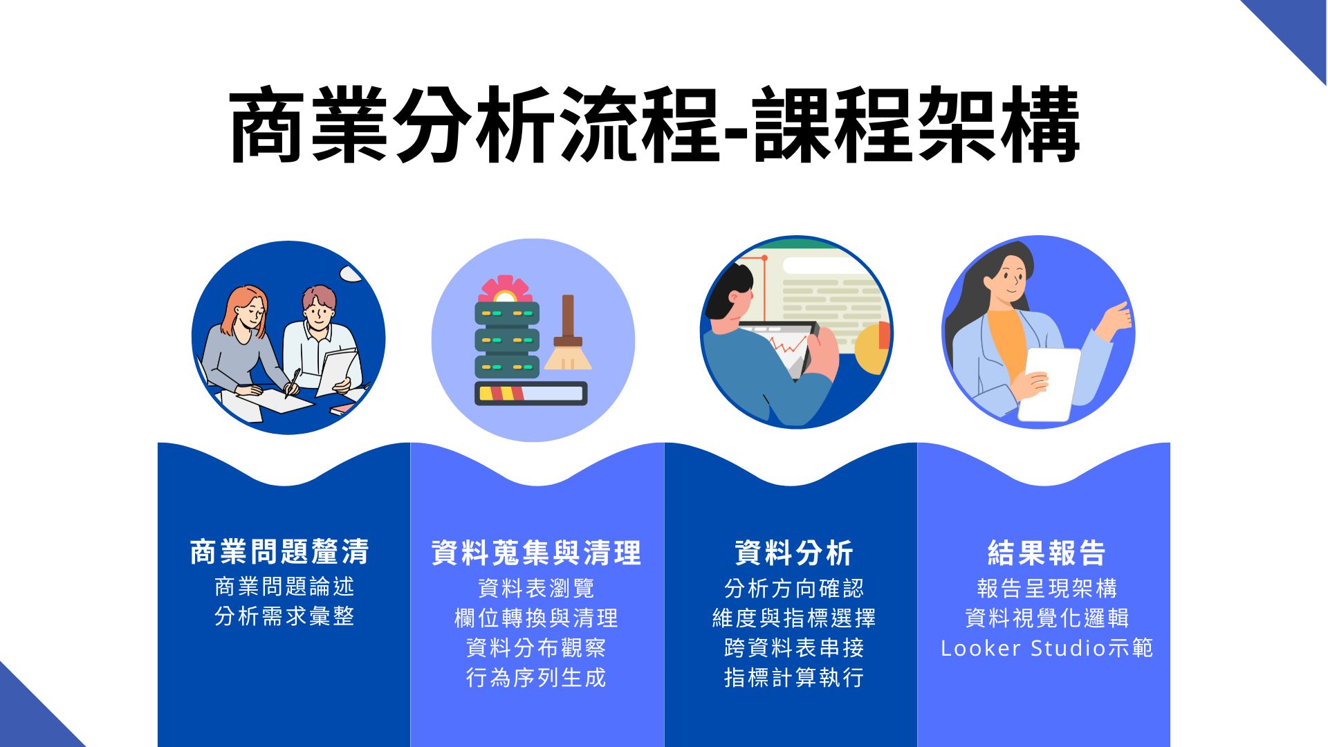 - 獨立完成商業分析流程:學員將能夠從需求確認到結果報告,獨立實作完整的商業分析流程,提升在工作中的數據應用能力。