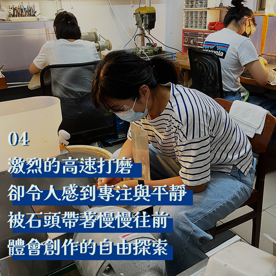 最後用你喜歡的礦物花時間一步步切出造型,粗磨到細磨
