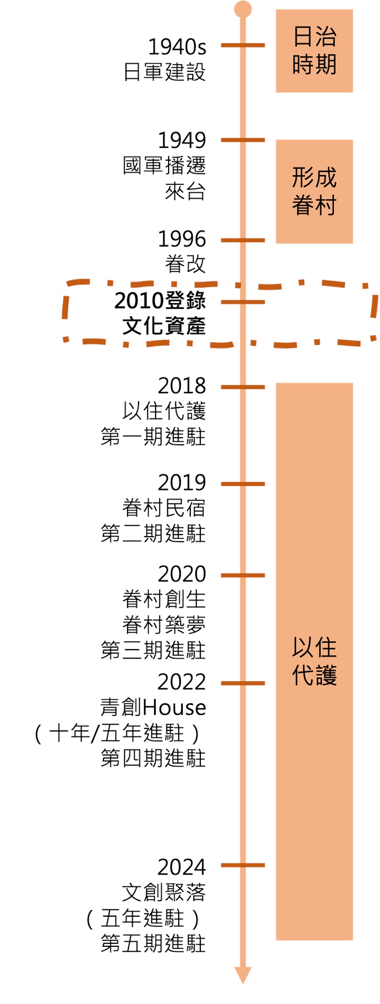 在1945~1950年間,中國大陸各地近200萬軍民隨著國民政府撤退來台,而國民政府為了解決人口激增帶來的居住問題,開始興建房舍或安排至日軍遺舍,並將新住民以軍種、職業、特性等,分別群聚於一定範圍,即為大家所知的「眷村」。