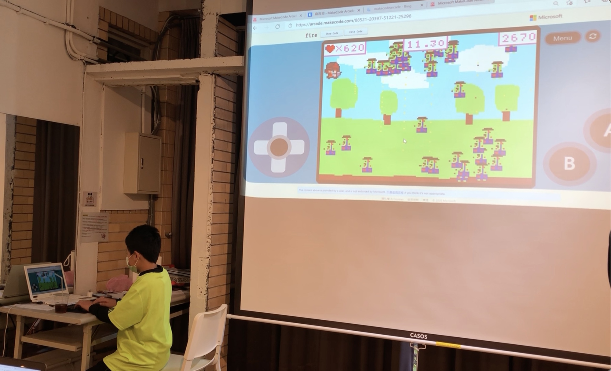 並使用微軟開發的 MakeCode Arcade 結合遊戲式學習,從探索、學習到創作,做出一款屬於自己的作品。