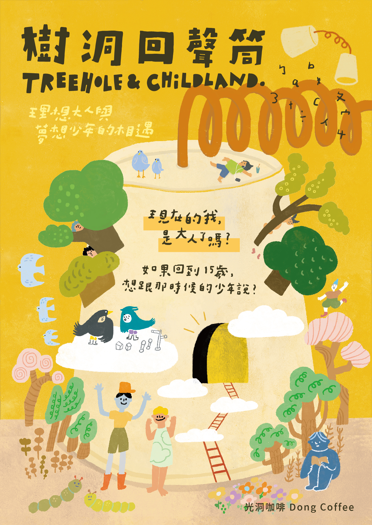 現在的我,是大人了嗎?如果回到15歲,想跟那時的少年說什麼呢?原來,理想的大人也會__________;其實,夢想的少年可以__________。光洞咖啡開幕展覽【樹洞回聲筒】線上募集10/20前完成故事募集線上表單,11月開幕期間即可來店免費獲得心靈補帖「慈力卡」,還有機會成為展覽創作者之一喔。故事募集請往 【樹洞回聲筒】開幕展覽故事線上募集
