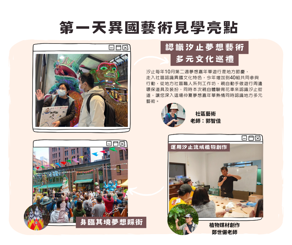 2. 夢想嘉年華活動體驗多元藝術行動的魅力: 汐止夢想社區藝術導覽、北峰溪走讀