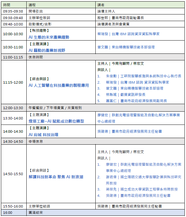 壓軸對談集結產官學界的專家,共同探索AI驅動下的產業變革與城市發展,為來賓帶來深具啟發的AI應用與策略見解,激發創新靈感和未來規劃。