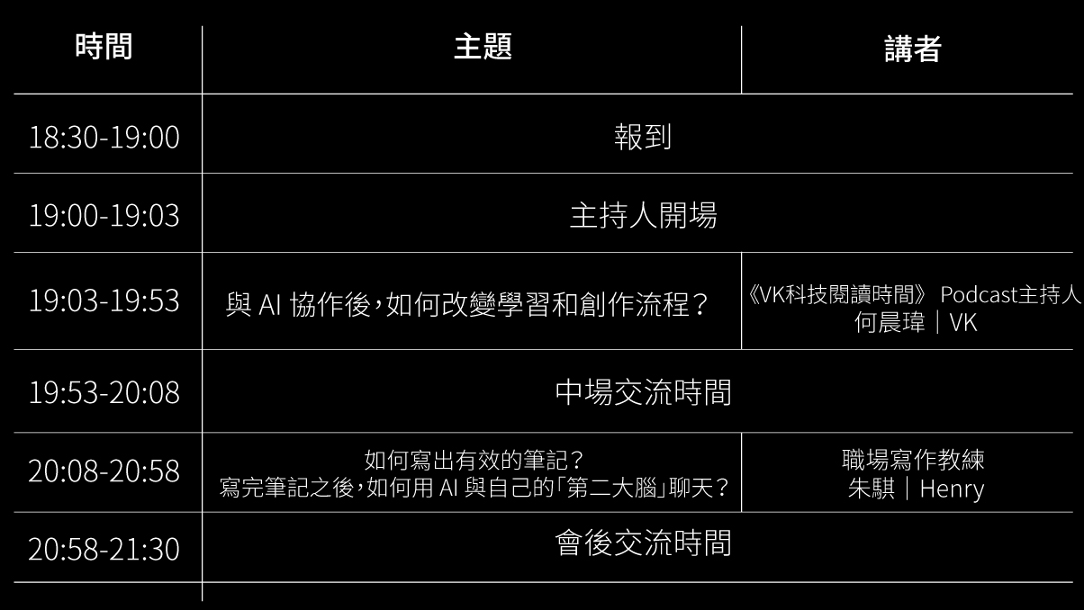 活動時間:19:00 - 21:00(18:30 現場開放報到)