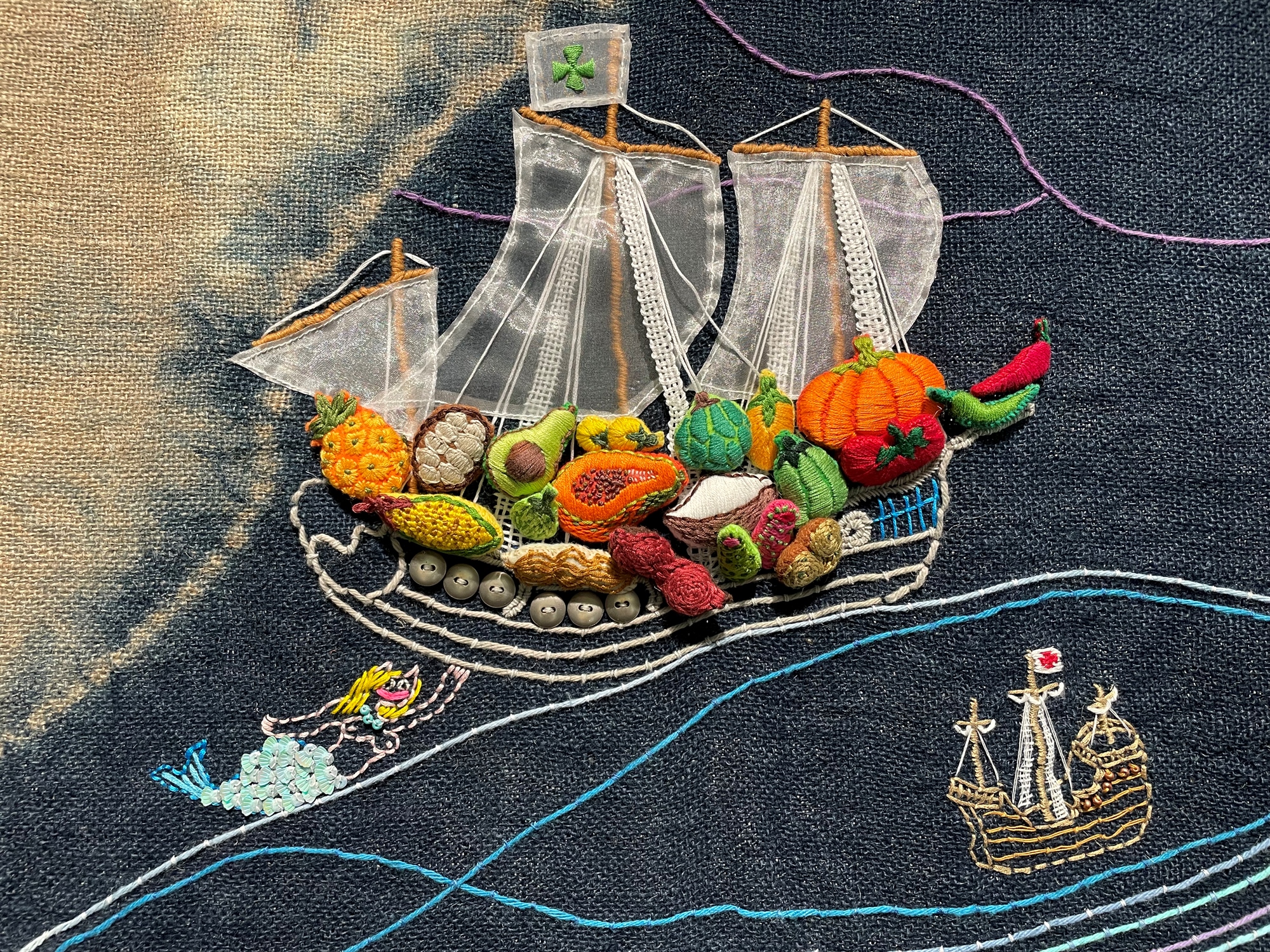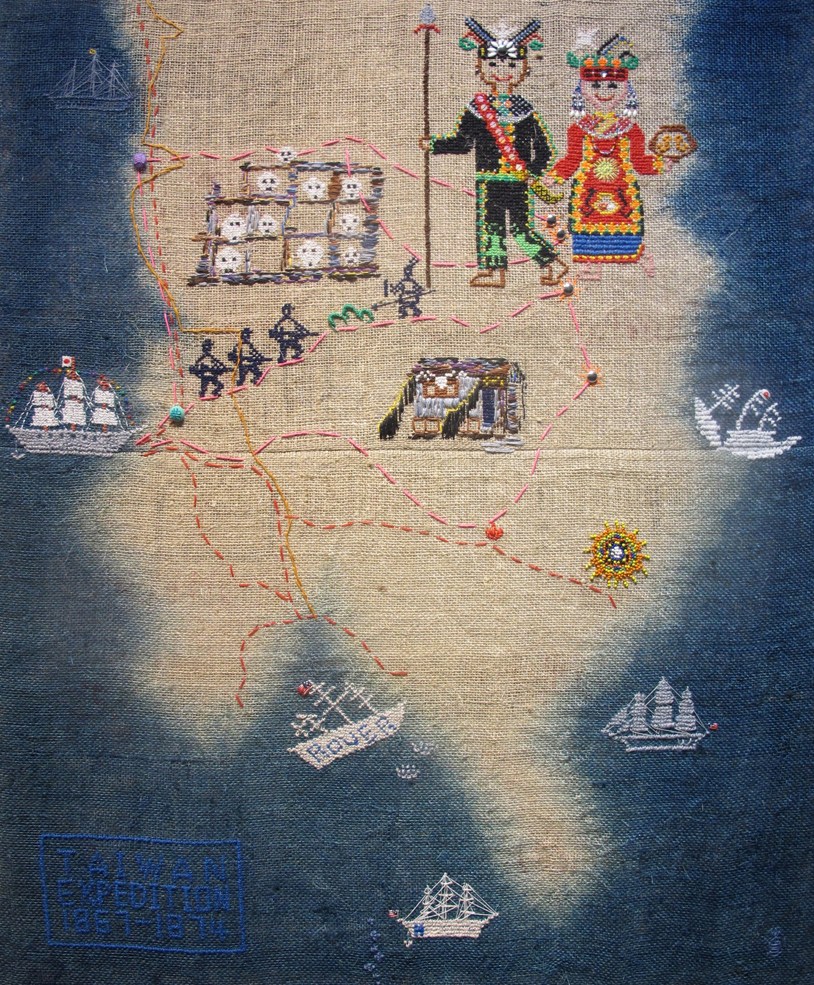 藝術家鄧文貞為悍圖社成員之一,畢業於巴黎國立高等美術學院,擅長運用各種纖維材質,輔以天然染色、刺繡與軟雕塑等,創作不同形式的作品。