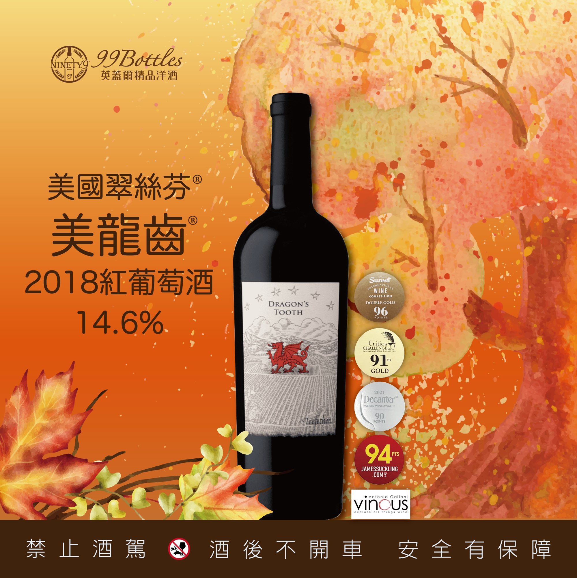 美國翠絲芬美龍齒 2018 紅葡萄酒 (價值2,400元)