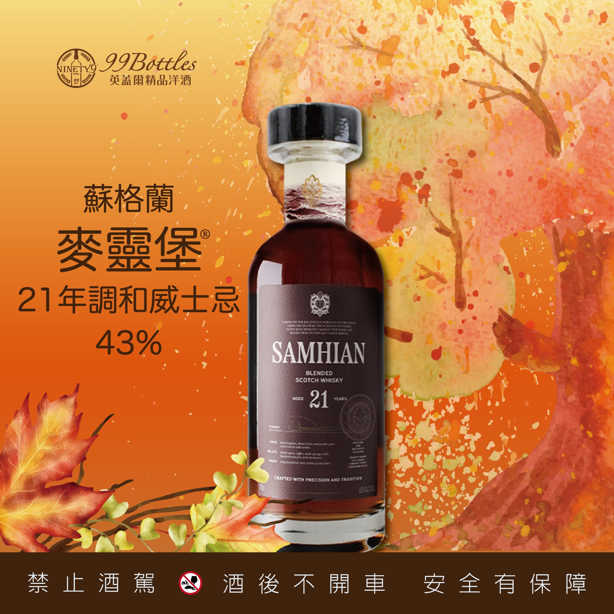 蘇格蘭麥靈堡SAMHIAN 21年調和威士忌 (價值3,600元)
