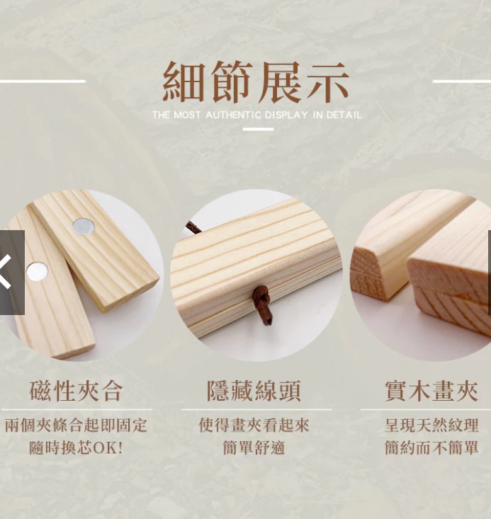 1.磁吸掛畫夾(實木+強力磁鐵)