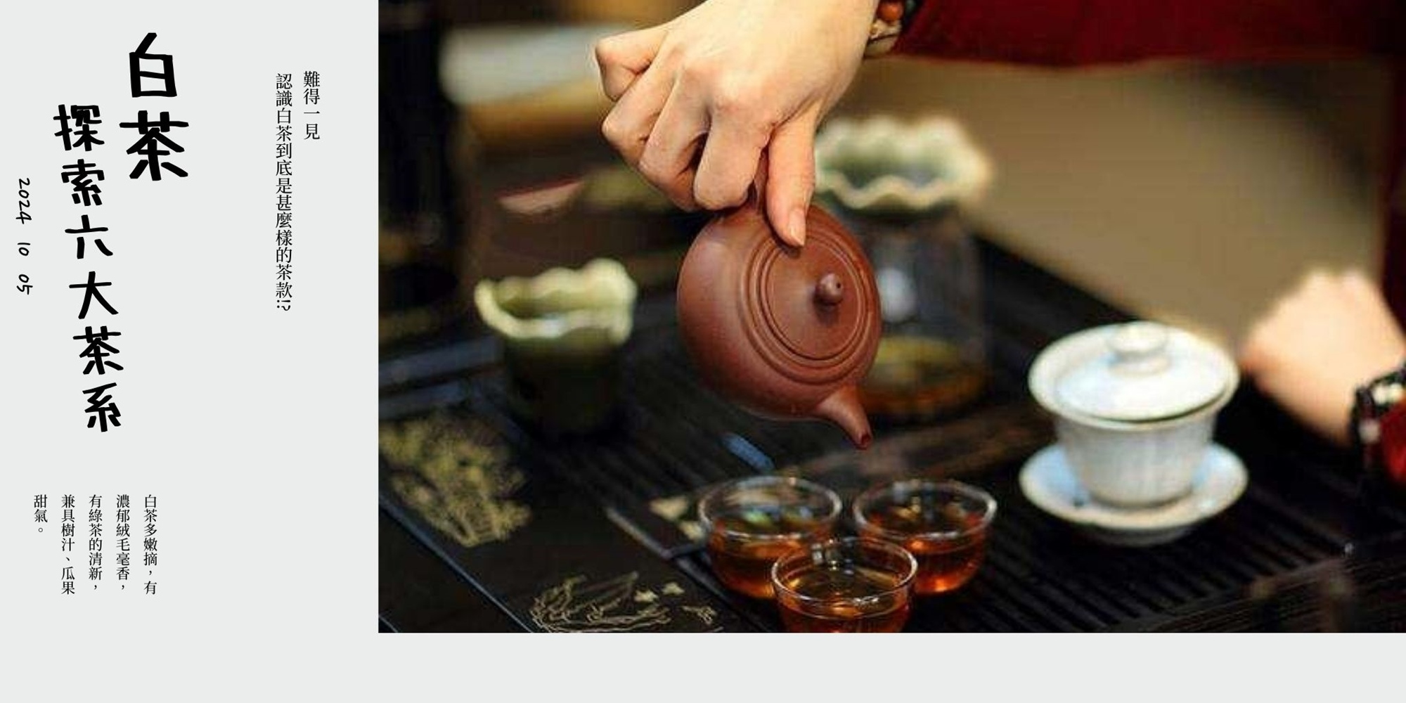 歸類在六大茶系中,最少工序,卻又耗時最長製作時間的茶款,若有不慎就會是落葉水的滋味,但若做得好,不僅滋味迷人,耐沖耐泡千變萬化,花果香又令人驚艷。白茶商品,易出現以下幾種特色: