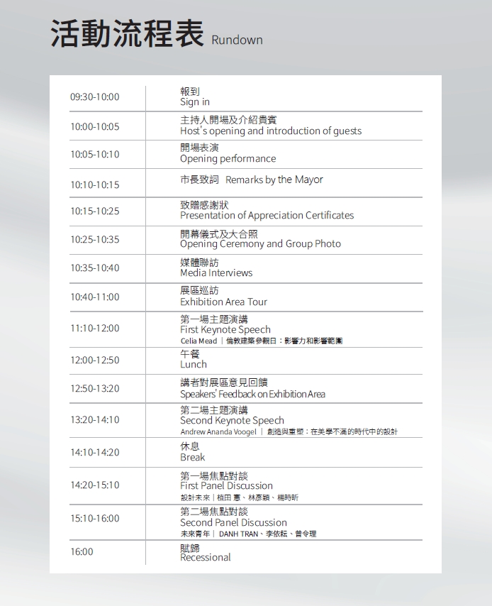 Sponsor :Messe Taoyuan | Kindom Yushan Education Foundation | MAUD | Bio-architecture Formosana | LIH PAO GROUPS | Dingyue International Integrated Marketing