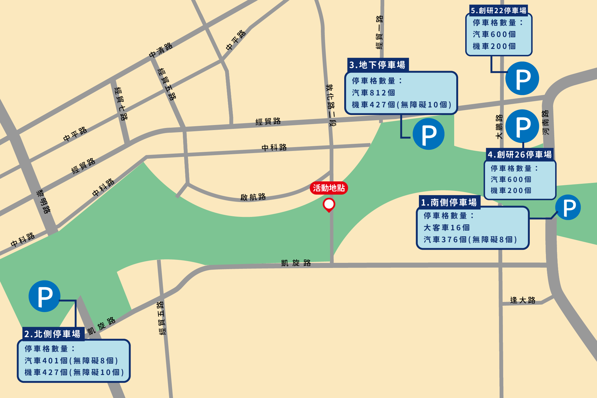 3.自行開車:國道一號南下大雅交流道右轉黎明路→左轉中科路→遊客中心(台中市西屯區中科路2966號)
