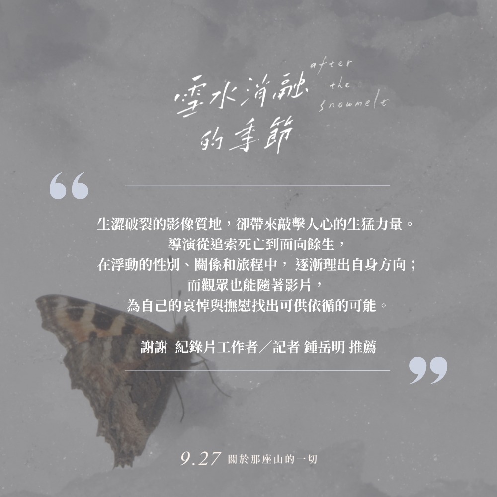 「在雪融的季節,有些事物重見天日,有些事物則隨之消逝⋯⋯」