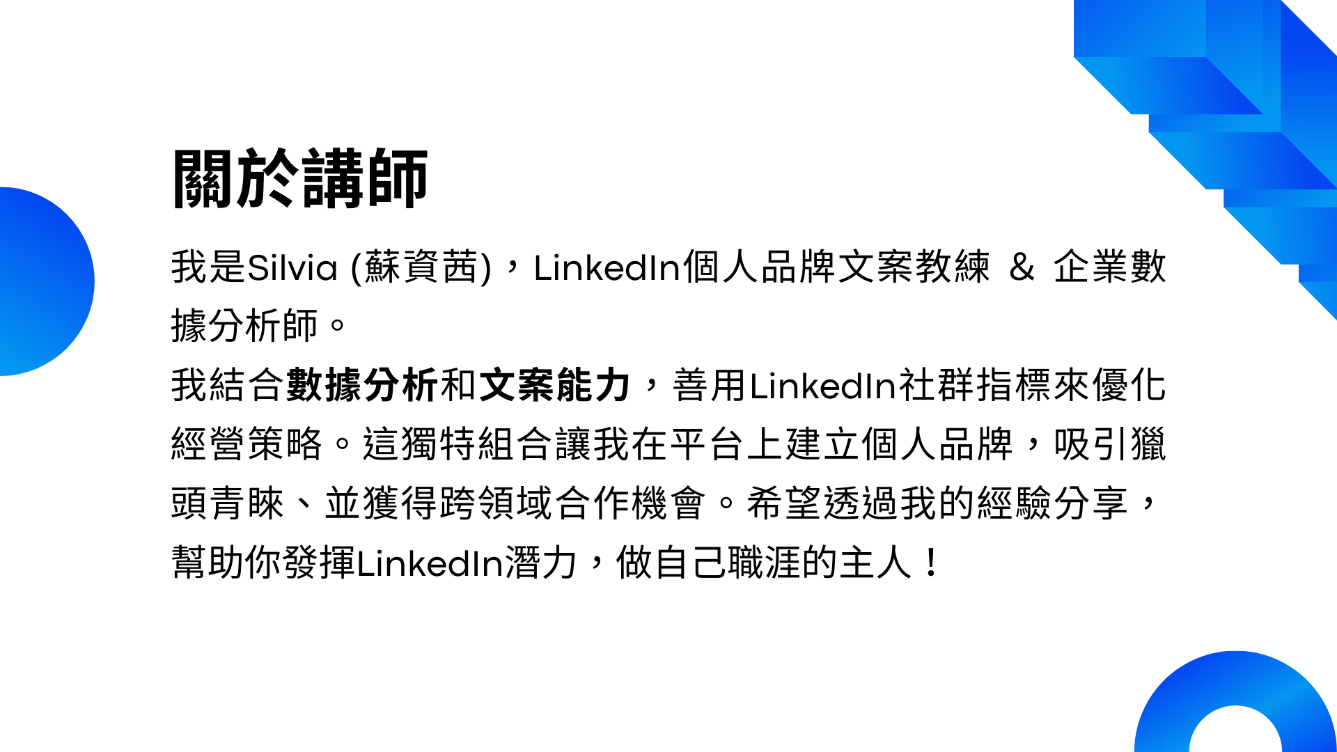 🏷️ 講師LinkedIn : https://www.linkedin.com/in/silviasulight/