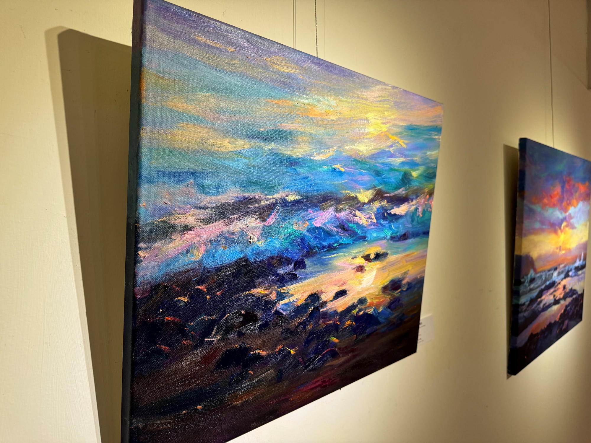 「山海絮語 - 吳佩珊油畫展」為愛好台灣自然風光的藝術愛好者提供了一個沉浸式的視覺盛宴。吳佩珊自2016年開始油畫創作,以台灣東北角壯麗的海岸線、秀麗的山脈、日出的光影為靈感,展現出豐富的色彩與大膽的筆觸。本次展覽作品以表現自然風光為主,融合了大海與山脈的動人景致,觀眾可近距離感受自然的美好和藝術的深邃。