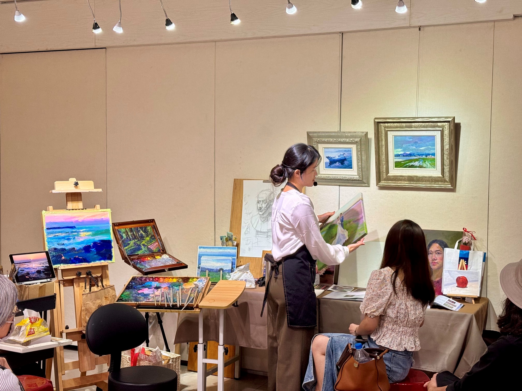 除了欣賞靜態的作品,吳佩珊還會在部分展覽日舉行現場油畫示範,讓觀眾有機會了解她的創作過程並與藝術家交流。