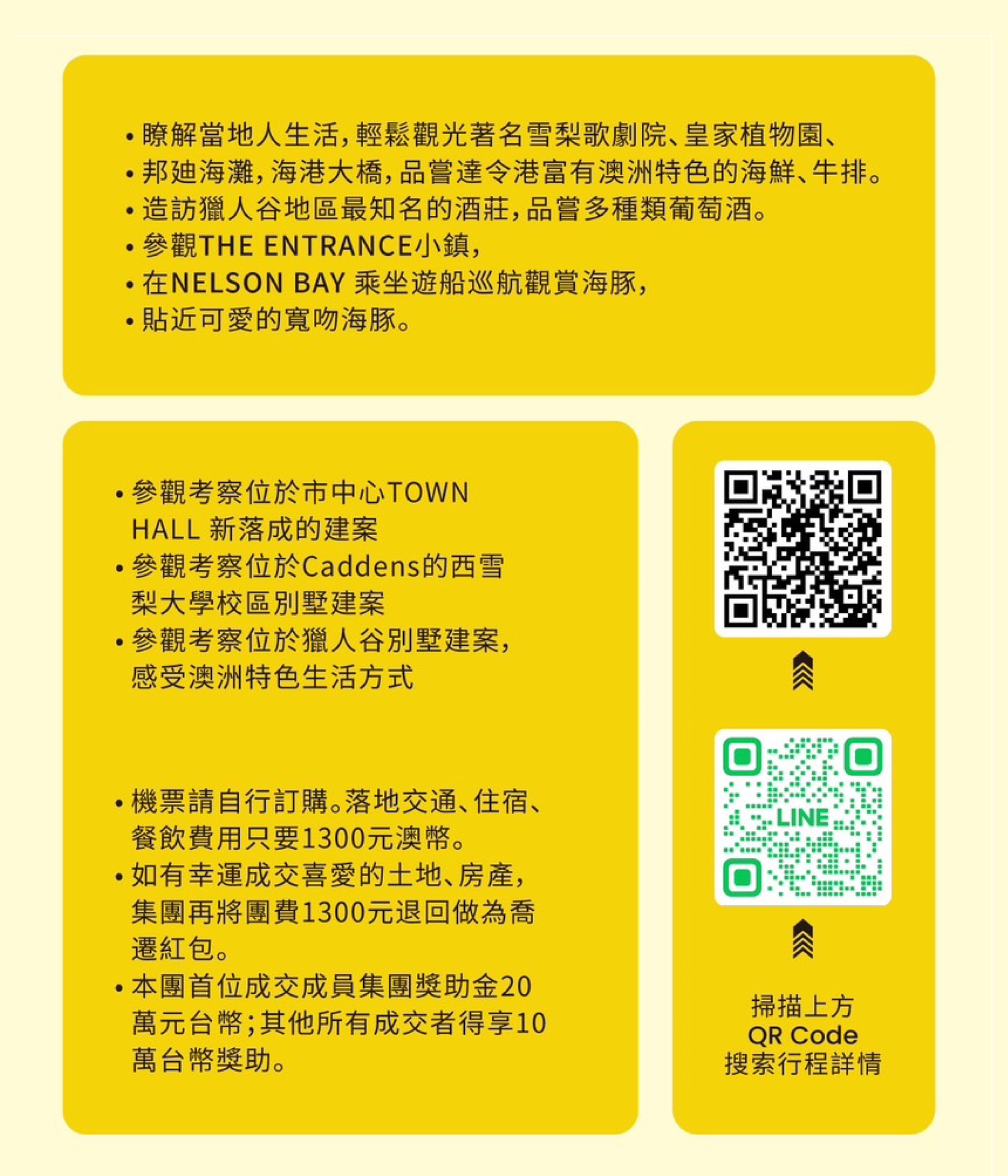 報名參加考察團,不僅有機會獲得高達20萬台幣的獎助金,還能享受超值1300澳幣的全面服務!
