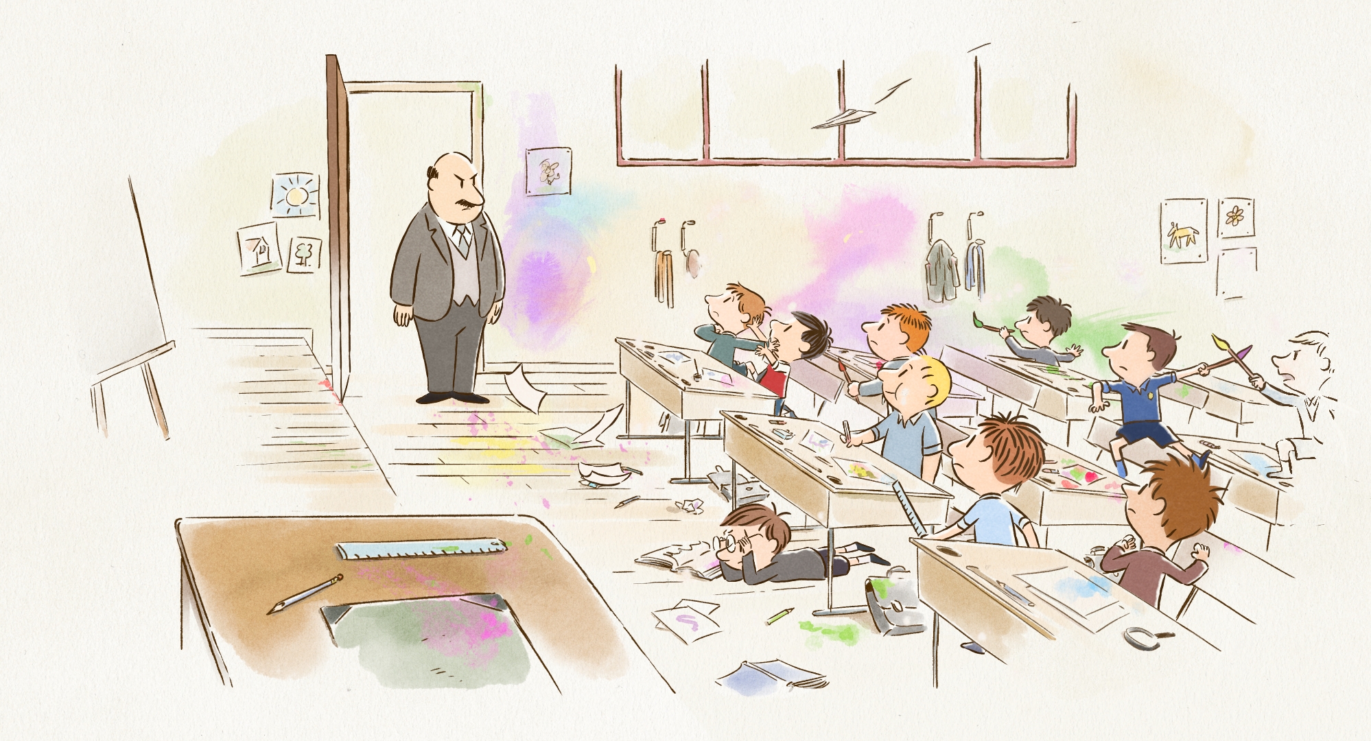 小淘氣尼古拉擁有一個充滿歡樂的童年,與同學們在課堂上嬉鬧、向父母們鬥嘴胡說八道,調皮搗蛋令大人們傷透腦筋!某天,尼古拉奇蹟似地從畫紙中躍起,並遇見賦予他「生命」的畫家桑貝以及作家戈西尼,享受著童年歡樂的尼古拉卻始終不明白,為何大人心中總有那麼多約束和煩惱?於是,這場神秘的相遇促使三人展開了一場尋找「快樂的源頭」的旅程