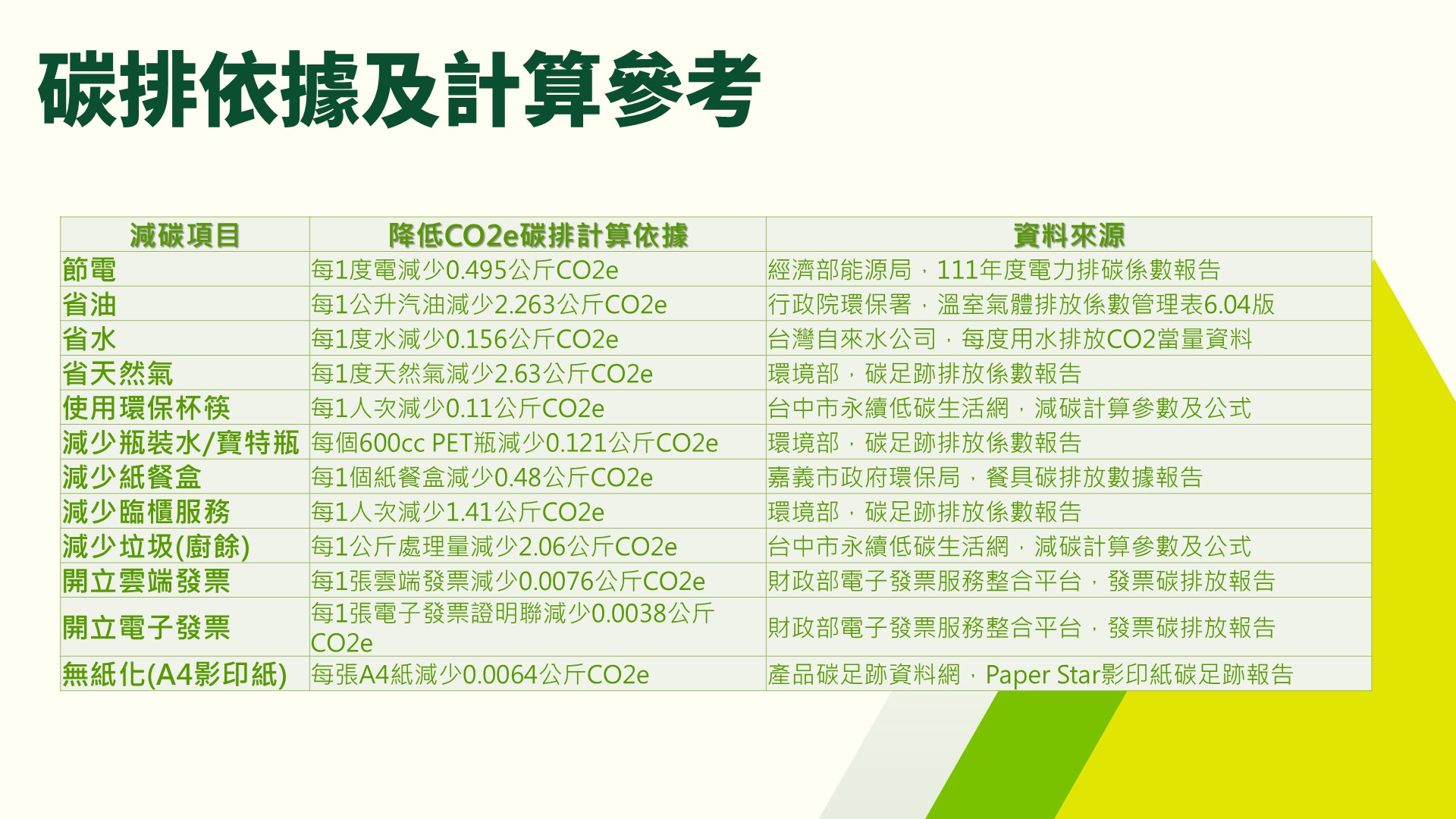 5. 降低碳排標準為何?又要依循甚麼準則計算減碳係數?(另提供碳排計算網站查閱參考)