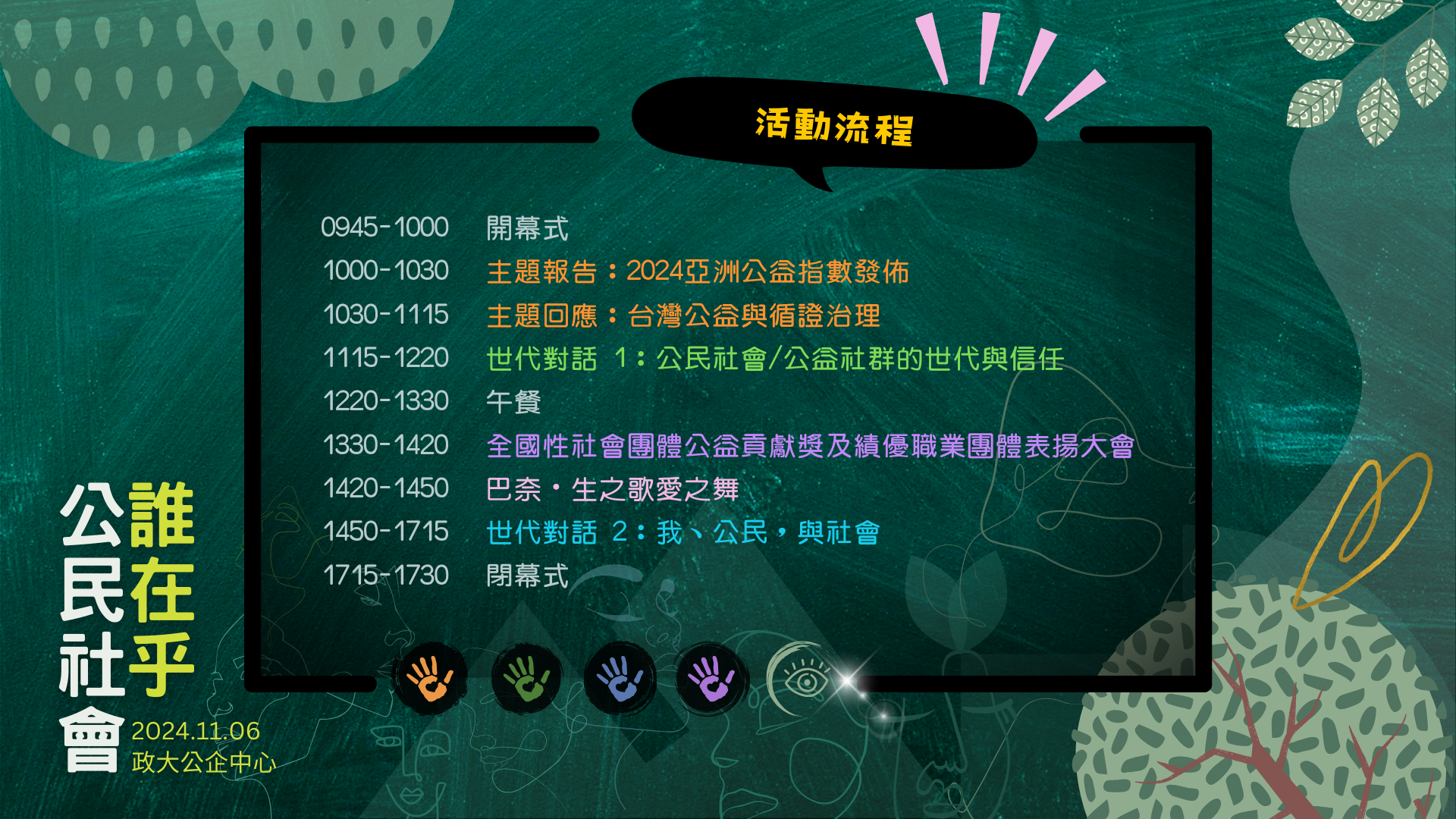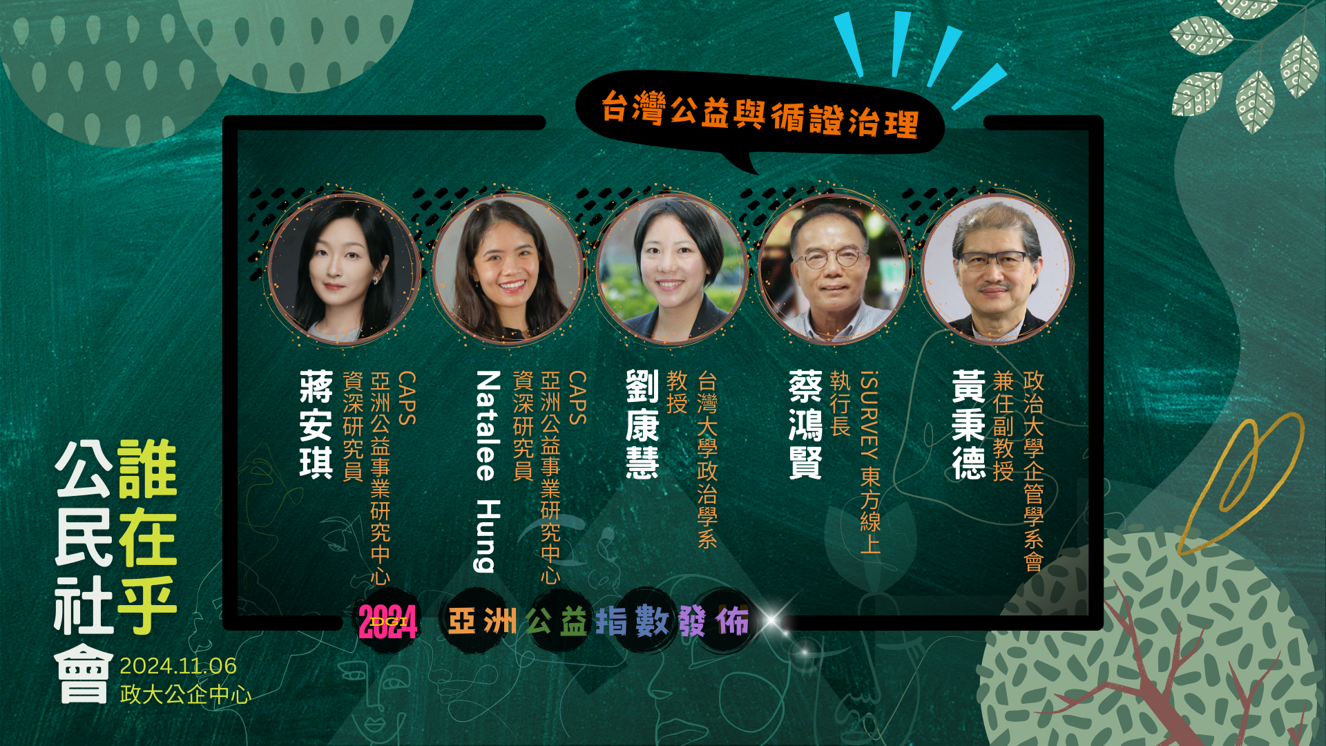 從地球到星星沒有捷徑。在一起往前走的路上,誠摯地邀請您參與 11 月 6 日「誰在乎公民社會?2024 亞洲公益指數發佈與世代對話論壇 暨 全國性社會團體公益貢獻獎及績優職業團體表揚大會」。這是一場向積極投入公益服務、深刻發揮影響力之人民團體致敬的年度盛典,也是匯聚各方智慧與見解的交流饗宴!讓我們彼此在乎、共同探究台灣從公益領域到公民社會的成就、隱患及曙光,持續引動熱情,激發創新的力量。