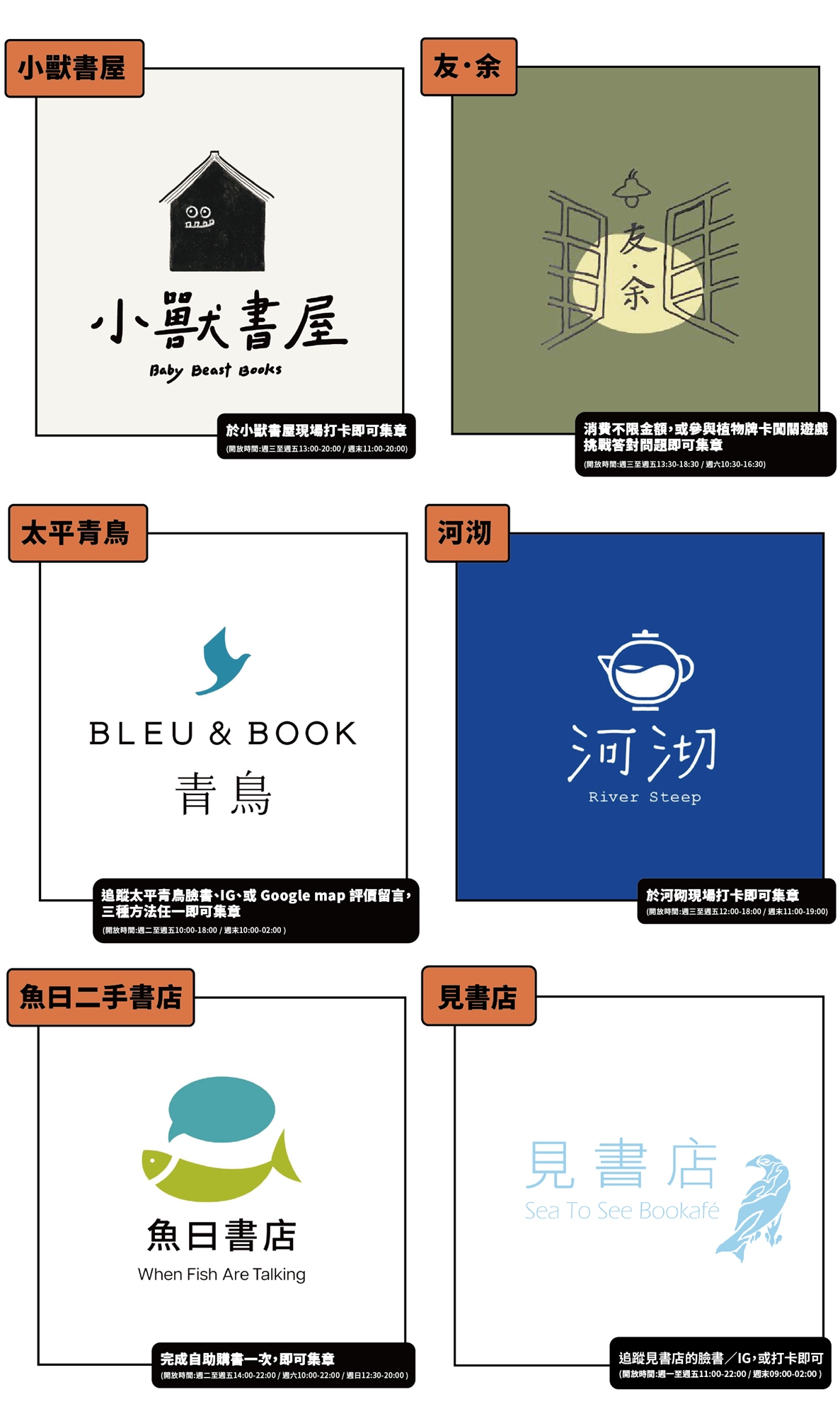 ○ 小獸書屋 ○ 友.余 ○ 太平青鳥 ○ 見書店 ○ 河沏 ○ 魚曰二手書店