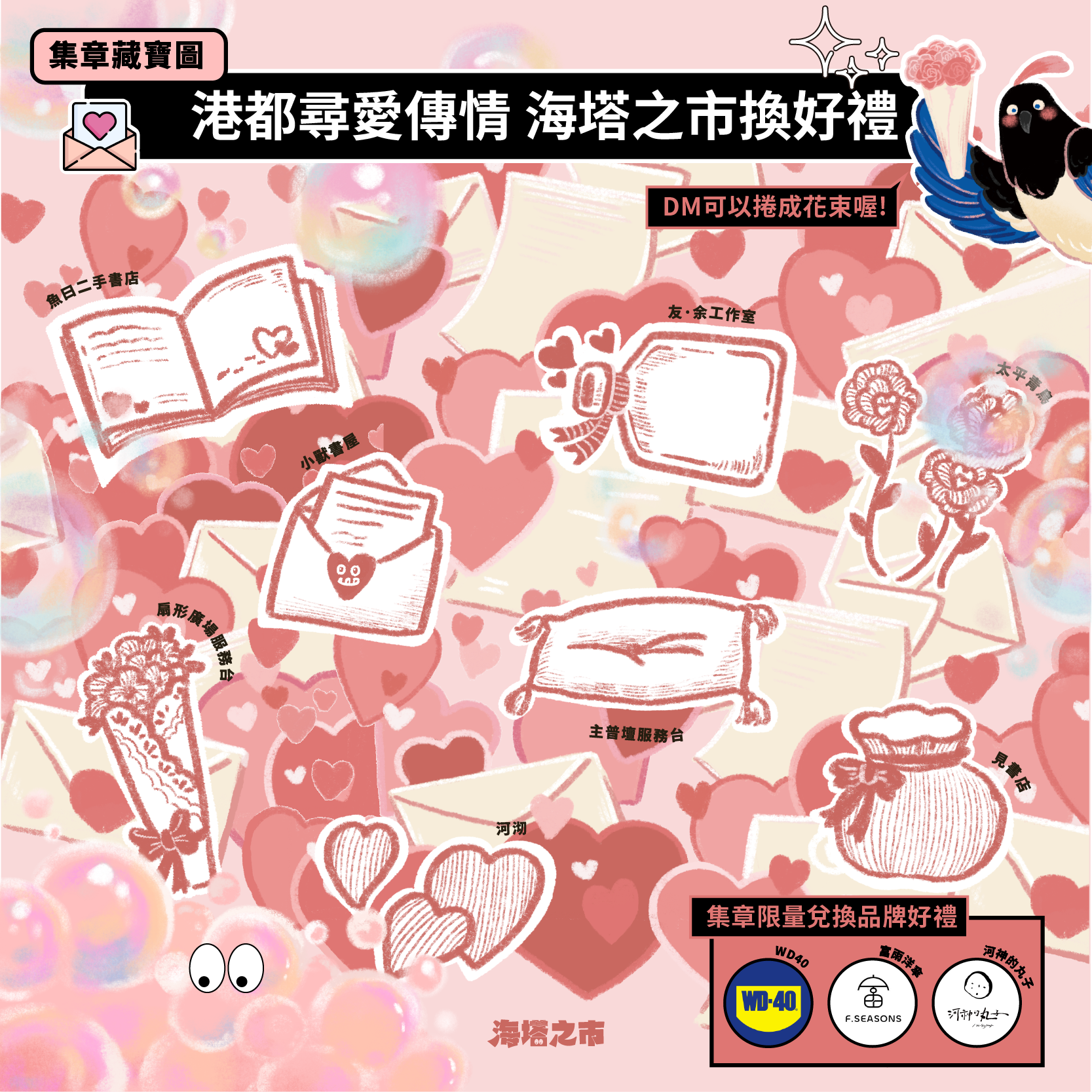 「蓋出你的獨一無二尋愛藏寶圖!」前往各個〔 集章任務點〕,完成任務後,就能在專屬蓋章區,盡情揮灑創意,蓋出只屬於你的獨特藏寶圖!
