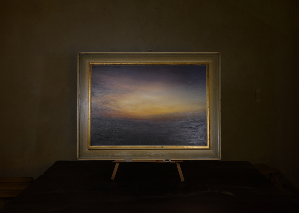 但長期以來,單純觀看攝影作品的體驗逐漸無法滿足我內心的需求,甚至讓我感到一種厭倦。攝影作品的輸出與裝裱所帶來的扁平性在某種程度上限制了我的作品,讓我轉而將目光投向繪畫,特別是其強烈的現場性。我在畫布上增添了許多筆觸,將原本扁平的影像增添了繪畫性,並且尋找了19~20世紀的老框,藉由歷史痕跡的堆疊與詩意的表現形式,將我心目中的海景作品介紹給大家。