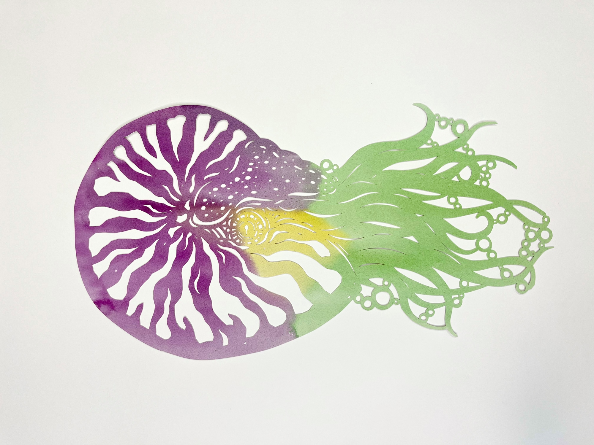 於東海大學社會學系兼任助理教授從事教育工作,以及剪紙藝術創作之餘,也熱愛登山健行,走進台灣百岳群山。在壯闊的山峰稜線間,感受自然的美與平靜,探索山林裡的詩意,並將這份感性轉化在紙藝作品之中。希望能藉由剪紙、紙刻藝術,一直創作出美好的動物姿態,介紹它們的特質與美麗,讓更多人想起我們曾經對地球母親的愛。