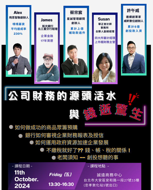 本課程「公司財務的源頭活水與錢逝驚生」旨在幫助企業主深入了解財務管理的核心要素,