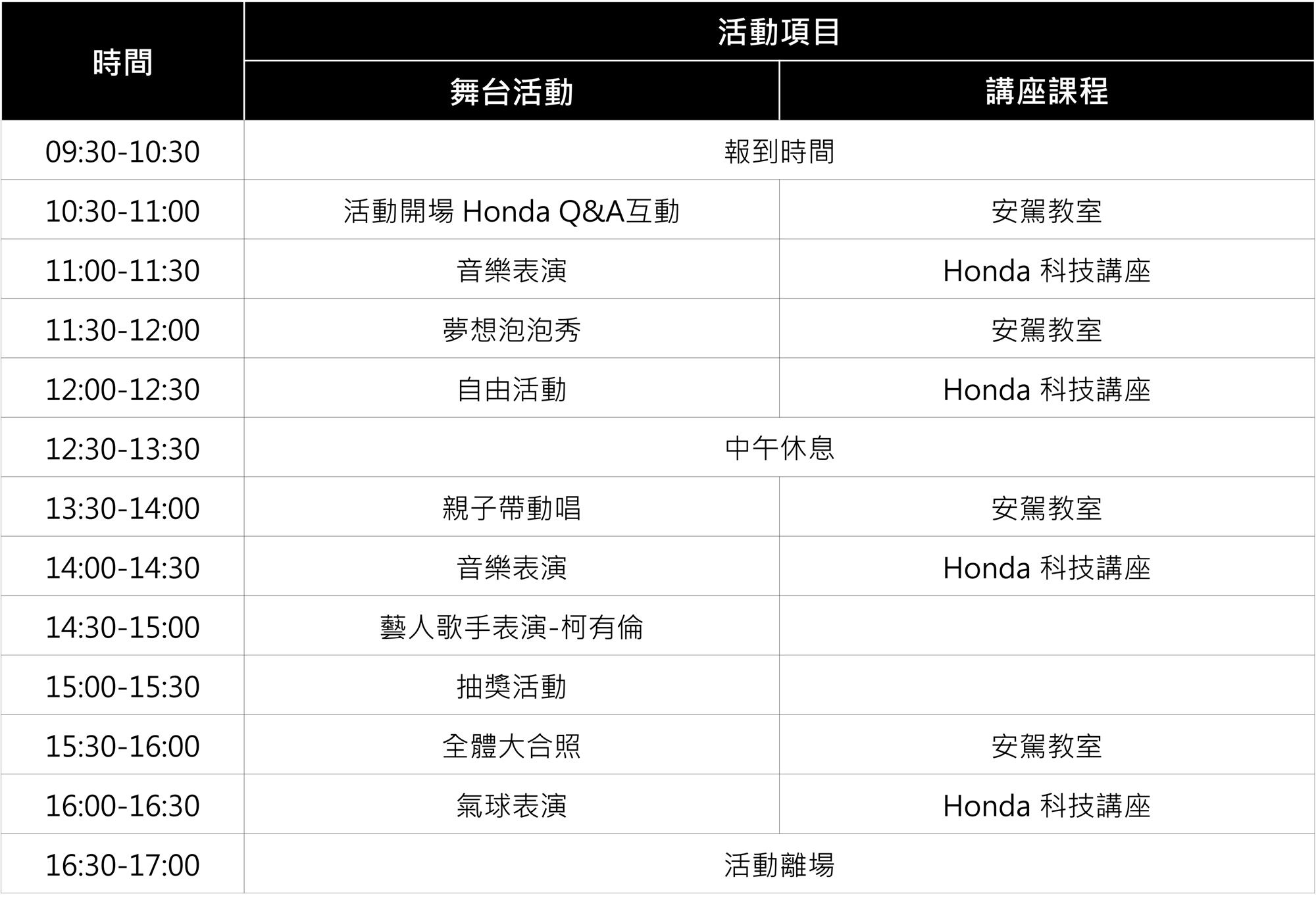 - 參加者參加本活動,視為同意主辦單位各項活動規定與注意事項,主辦單位保留隨時解釋本活動辦法、注意事項與活動進行方式,以及審查參加者資格與修改活動細節內容等權利。若因天災、豪雨或其他不可抗力之因素,主辦單位有權宣布停止、延後、退費或更改活動,詳情請密切注意 Honda Taiwa官方網站。