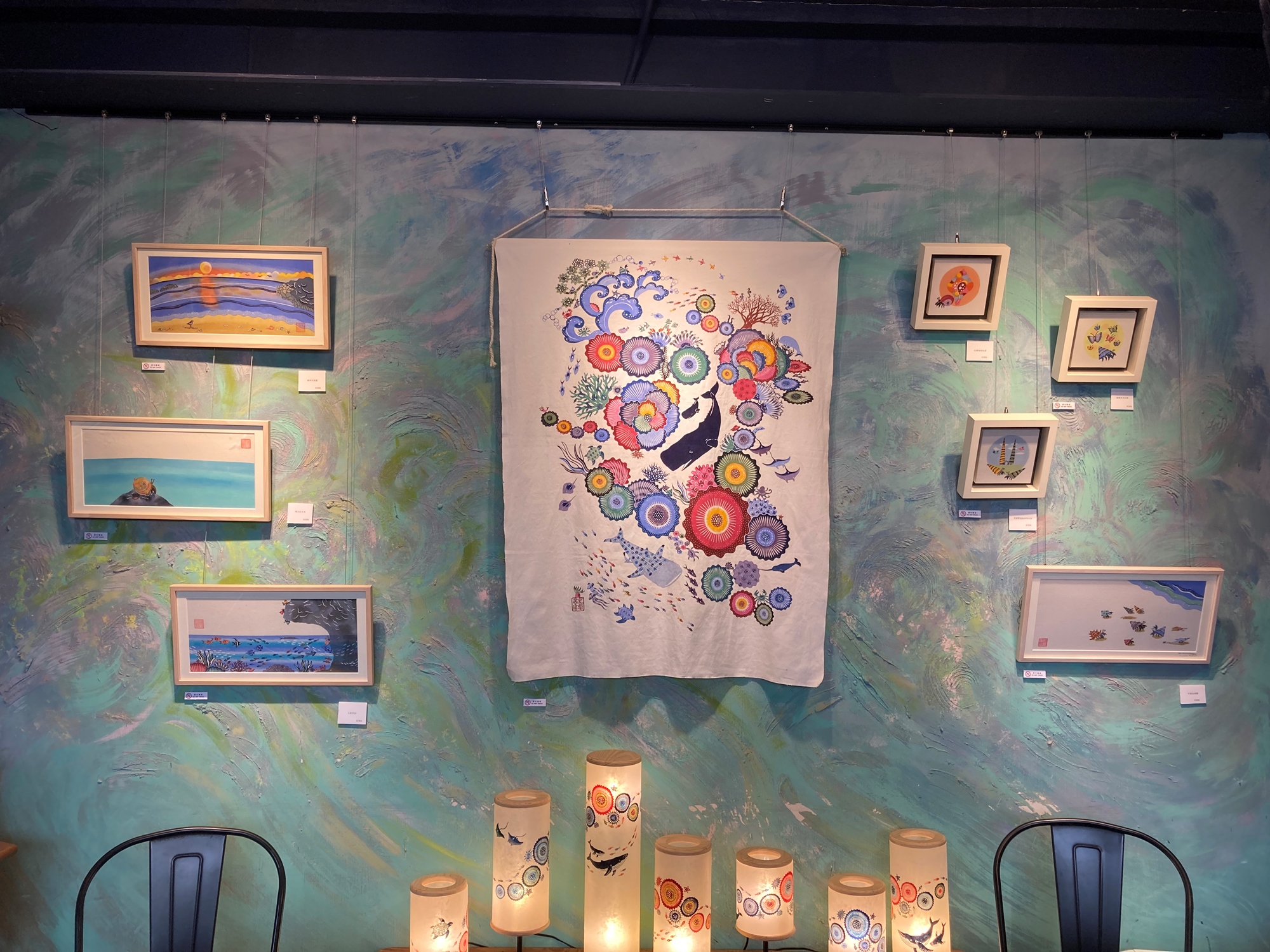 繼書店八月舉辦的紅型染工作坊,這次更邀請明日香延續她在和平島公園的繪本展,將《寄居蟹的夢》中的原畫帶來書店二樓展示!裱框的、懸掛的、做成燈罩的,一起來看看各式各樣的紅型染作品吧!