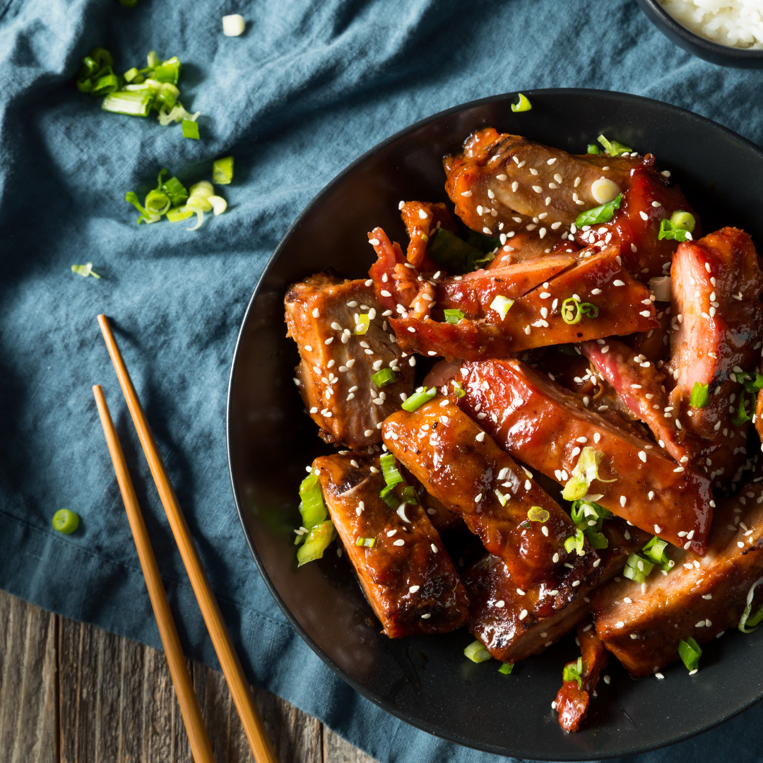 1.蜜汁豬肋排 (BBQ Ribs): 豬肋排、芹菜、紅蘿蔔、蘋果、洋蔥、白酒、薑、糖、蜜汁醬。