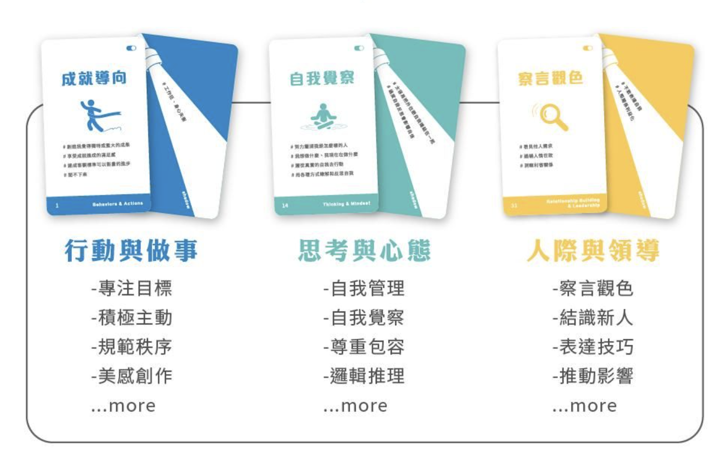 工作坊中,將使用「職能盤點卡」幫助各位管理者不僅找出自身的領導風格,也藉以判斷每一位部署合適的溝通、帶領方式。