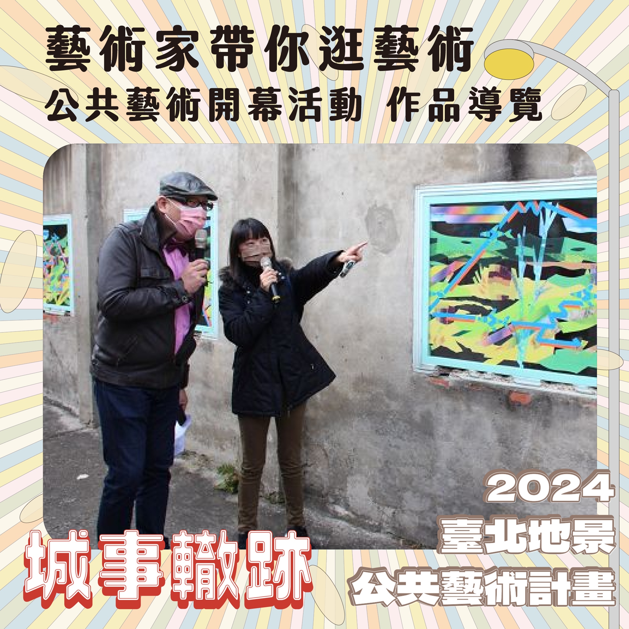 2024臺北地景公共藝術計畫四位藝術家將帶領民眾參觀所有作品,以走讀形式藝術家們將分享他們創作的靈感來源、藝術風格和技法,讓參與者深入了解每件作品背後的故事。參加者將與藝術家面對面交流、提問。