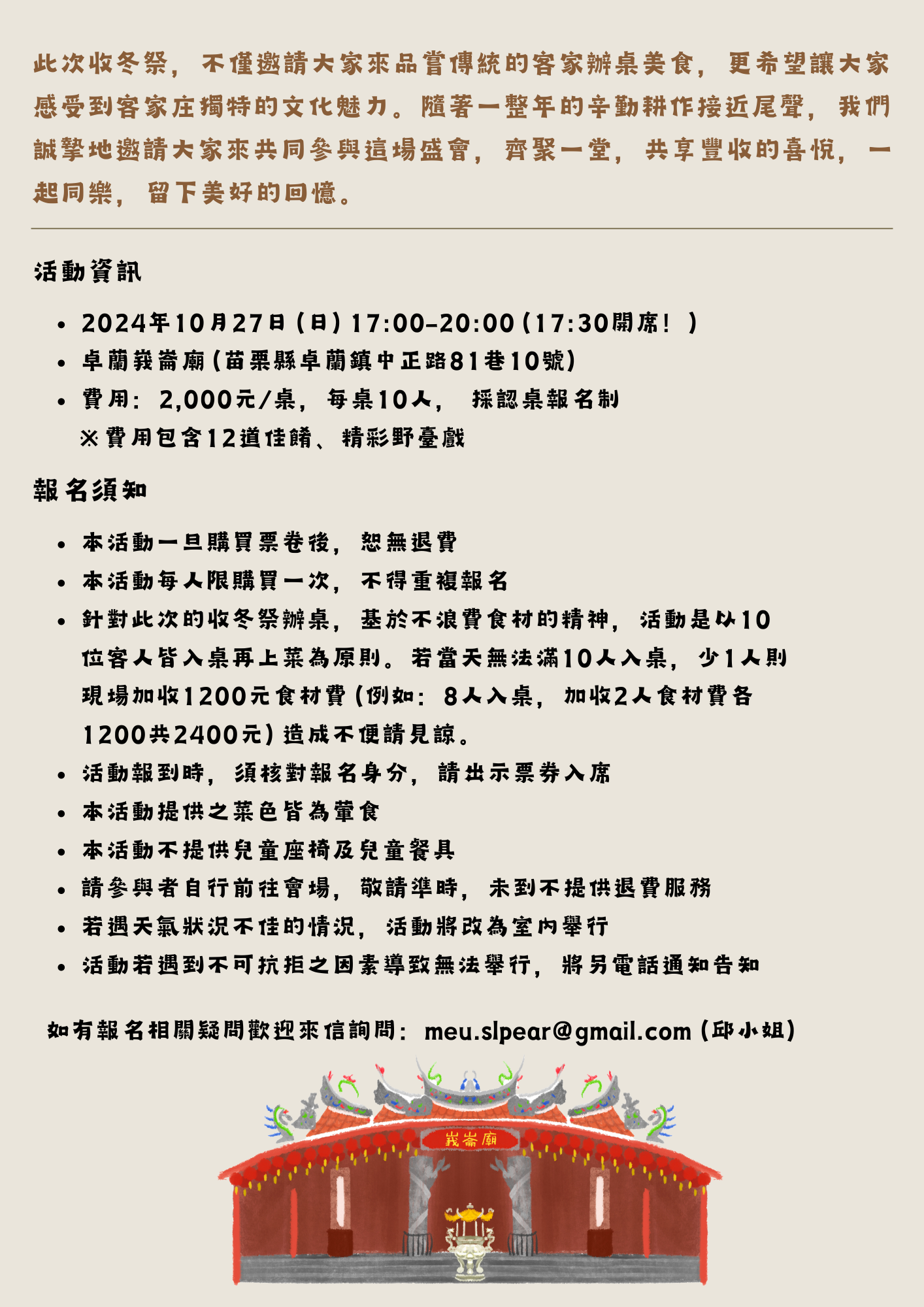 卓蘭收冬祭 — 共同來體驗辦桌的情與意