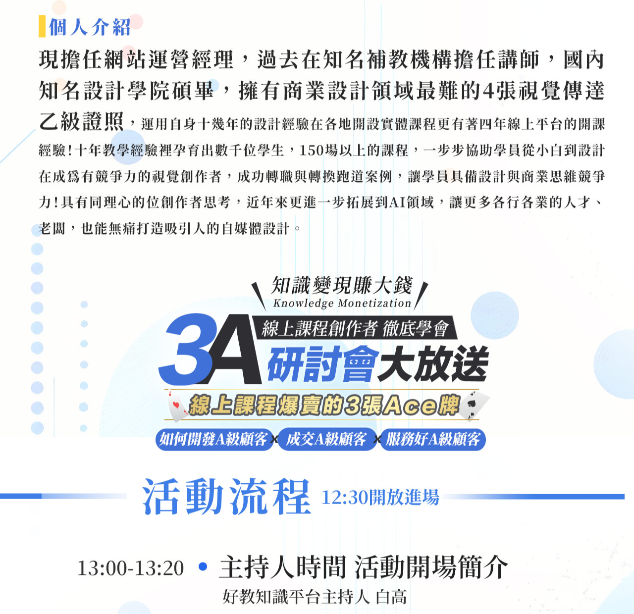 此為線上ZOOM會議課程,請先備好軟體與相關上課工具,並請與顧問聯繫確認email是否有收到上課通知。