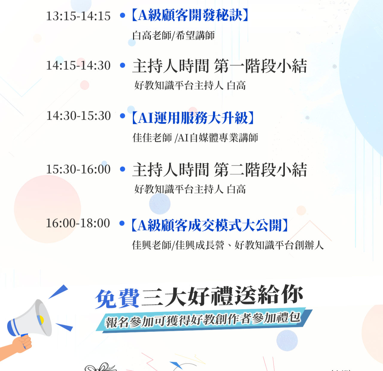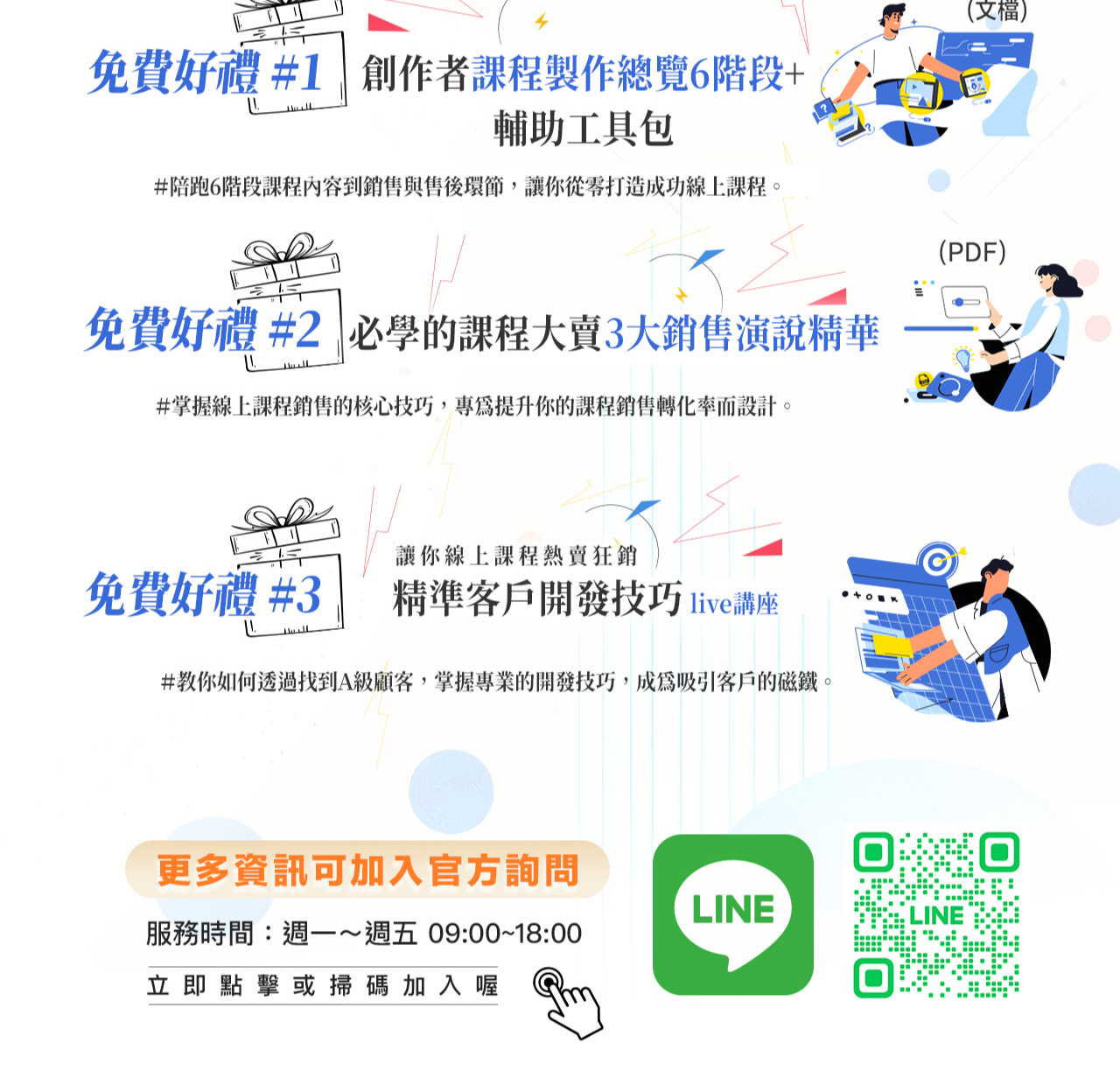 報名後,請加入顧問的line OA好友並進入課程群組,以獲得最新資訊。