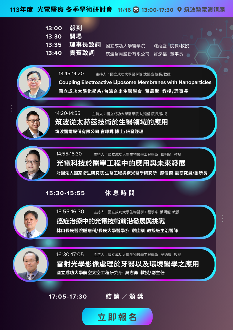 本次研討會特別適合光電產業相關業主、高階主管、醫生與學者,參與者將有機會接觸更多頂尖資源與技術,並建立寶貴的專業人脈與發展資源機會。誠摯邀請您一同參與,共襄盛舉!