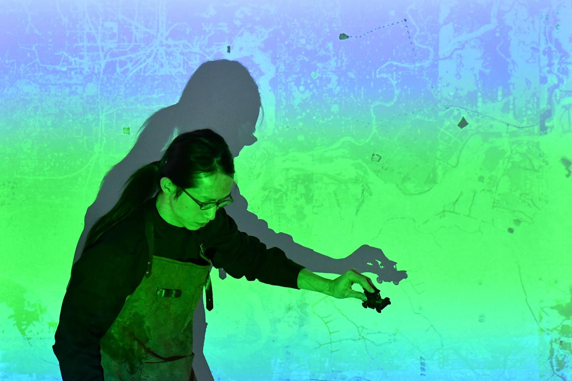 His work focuses on the disappearing buildings and ruins in cities, extensively seeking connections between historical maps and the current urban landscape. Through experimental creations, he explores the continuity of historical memories from the Japanese colonial period and their impact on contemporary Taiwan. Zhou's creative process draws from architectural design methods and language, starting with spatial surveying to layer images and develop installation spaces and performance art. In recent years, he has collaborated with Jin Hashimoto, using his family’s history in Taiwan during the Japanese colonial era as a subject for joint research and artistic projects.