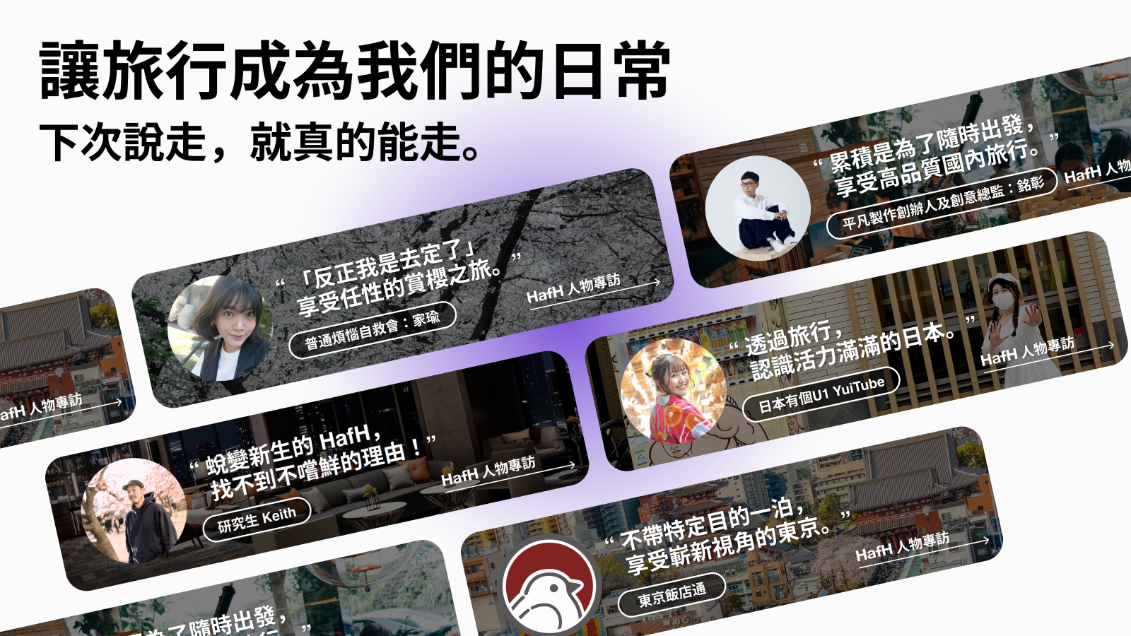 自日本長崎起步,HafH 在五年多的旅程中,成功挺過 COVID-19 且逆勢成長;獲得星野集團與日本海內外創投的肯定,如今在日本已擁有超過 10 萬名訂閱會員。以「訂閱制」為核心理念,持續創新迭代、靈活應對市場變化。HafH 的使命不僅是媒合旅宿與旅客,而是為了更多元的社會建立基礎建設,讓不曾想像過的旅程能自然而然地展開。透過 HafH,會員們能揮別浮動價格的焦慮,享受極大化行程彈性,一晚一晚累積旅行的美好回憶,更深入地認識世界。