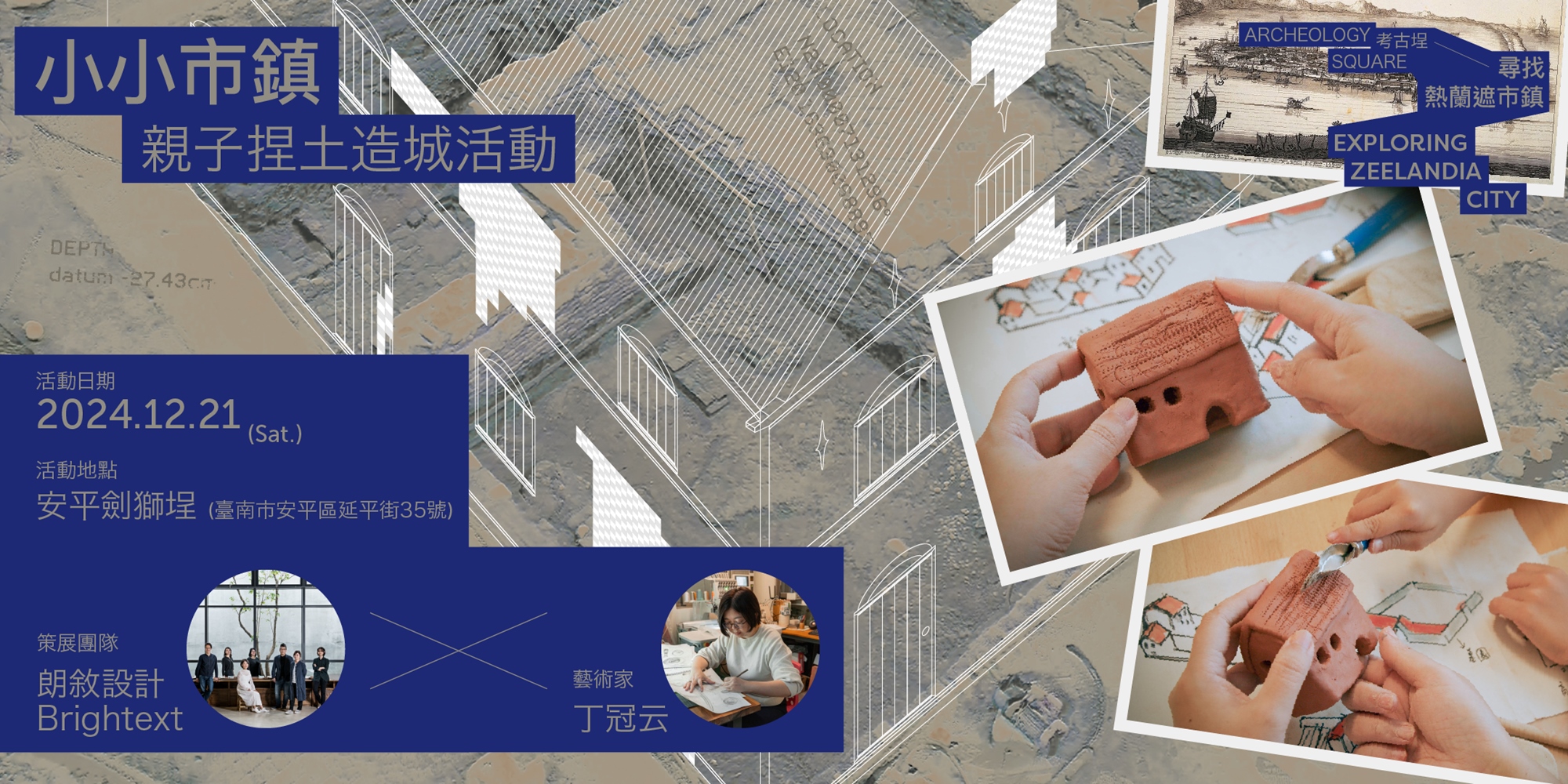 大航海時代,荷蘭人在台南安平建造熱蘭遮堡與市鎮。今日隨著文獻解析及考古遺構、文物的出土,學者們已經逐漸勾勒出熱蘭遮市鎮的生活形貌。策展團隊朗敘設計Brightext與藝術家丁冠云合作,邀請民眾在安平劍獅埕集合,共同捏土造城,開啟對四百年前安平的想像。