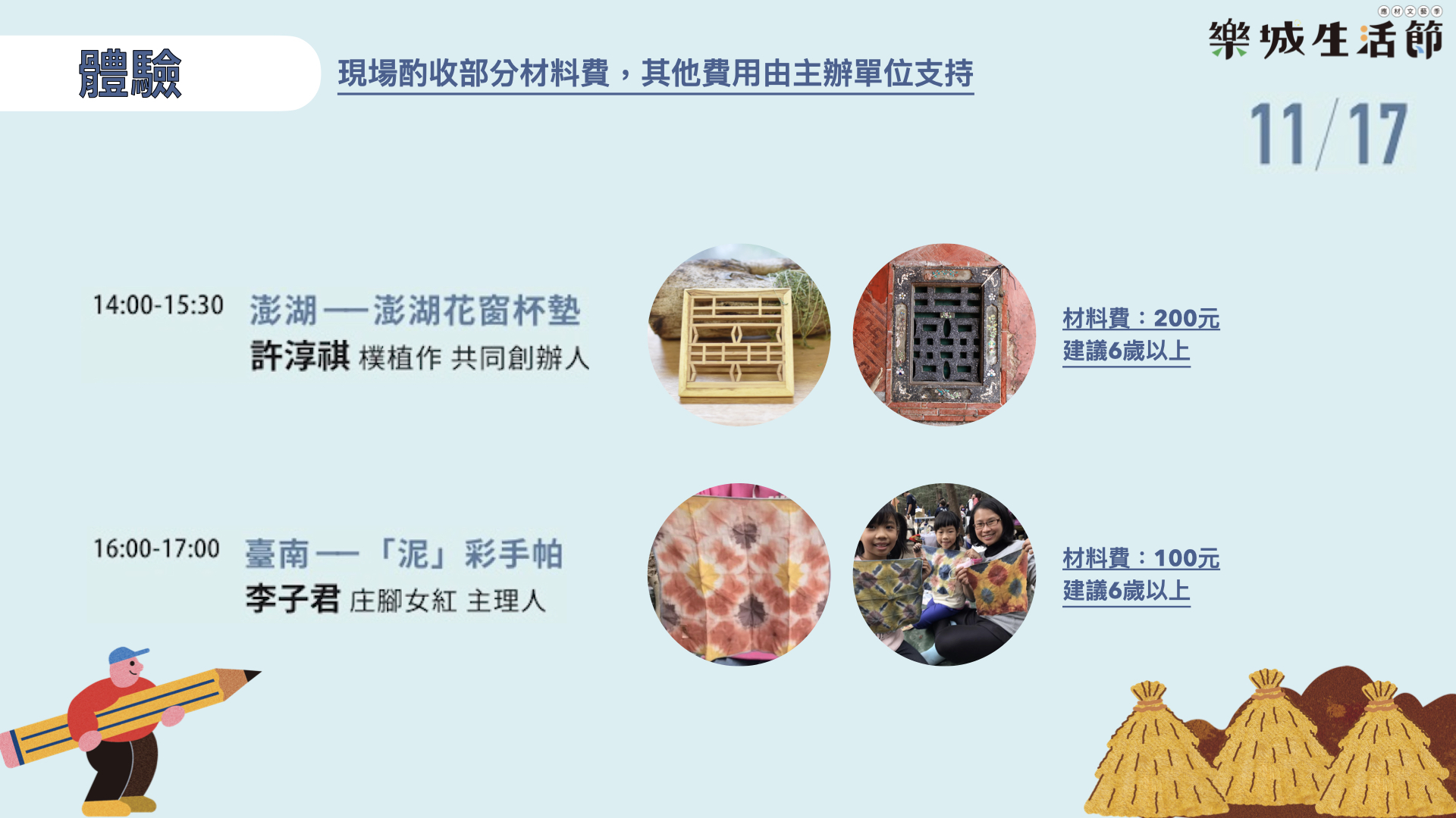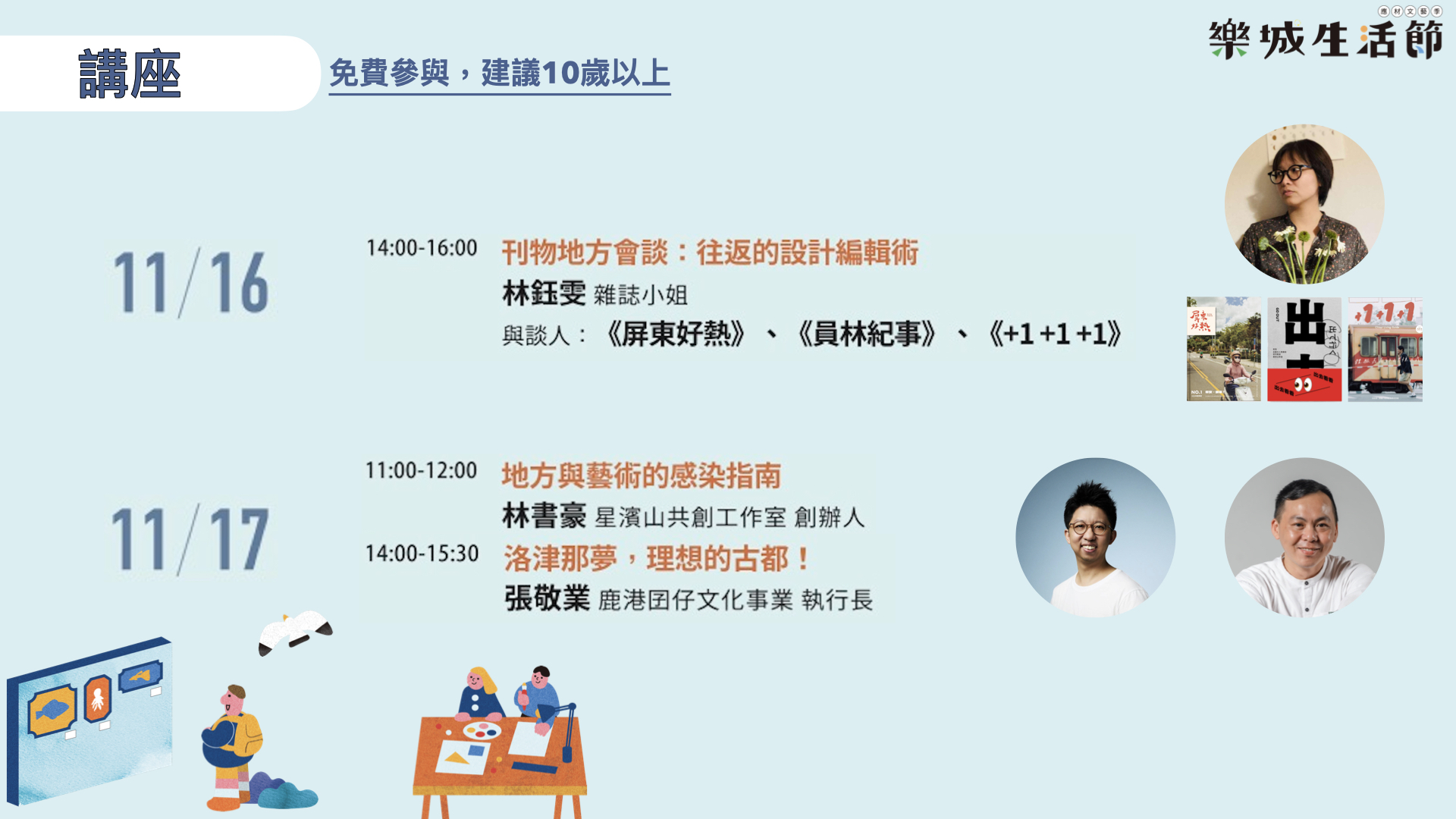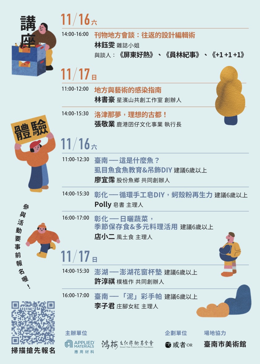 * 參與體驗和講座都要事前報名喔!!活動額滿可以點選「候補登記」票卷。若提前有名額取消,我們會依序後補並以簡訊通知,現場也會釋出名額,若活動時到現場可以提高後補上的機率喔!