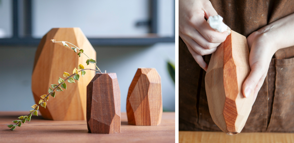 根據研究,用手碰觸原木時會感受到穩定的能量感,也因為如此木頭材質會一直被大家喜愛。在大溪,木器製作的過程中會產生一些邊角料,丟掉很可惜但要在加工又很花時間,因此溪木器開發了 - 實木水晶柱木花器,您可以透過簡單的砂磨上油,打造屬於自己獨一無二的水晶能量柱,中心圓孔置入玻璃容器,您可以每天採集花草更換小花器風景,也可以倒入擴香精油變成擴香器使用。
