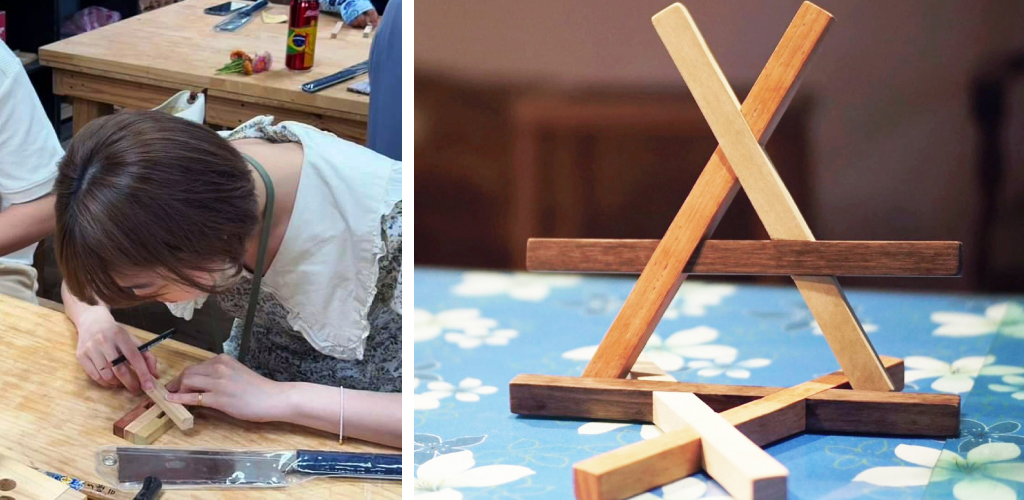 課程介紹 :使用手工具製作榫接完成杯墊後打磨上油完成作品