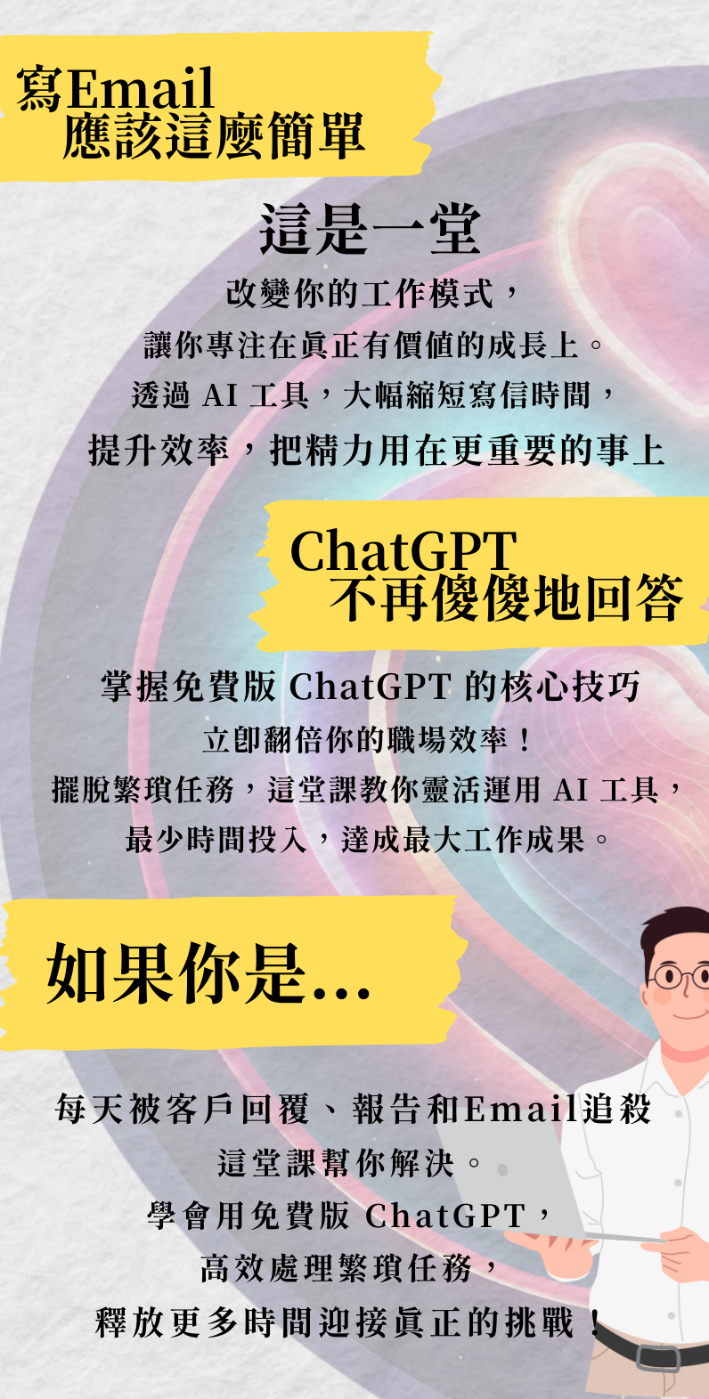 >立即報名參加,學習成為你職場上的高效助手,讓繁瑣的寫信任務瞬間變得輕鬆!解鎖A.I.高效人生