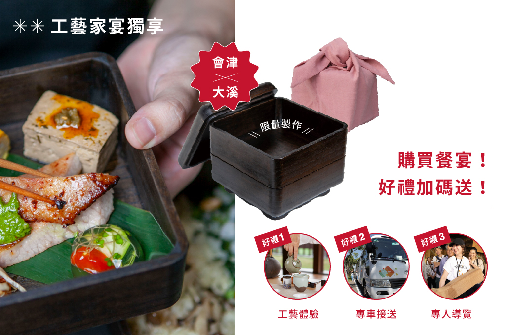 \ 享用工藝家宴,有吃又有拿,將會津X大溪限量弁當器皿袋回去 ! ! /