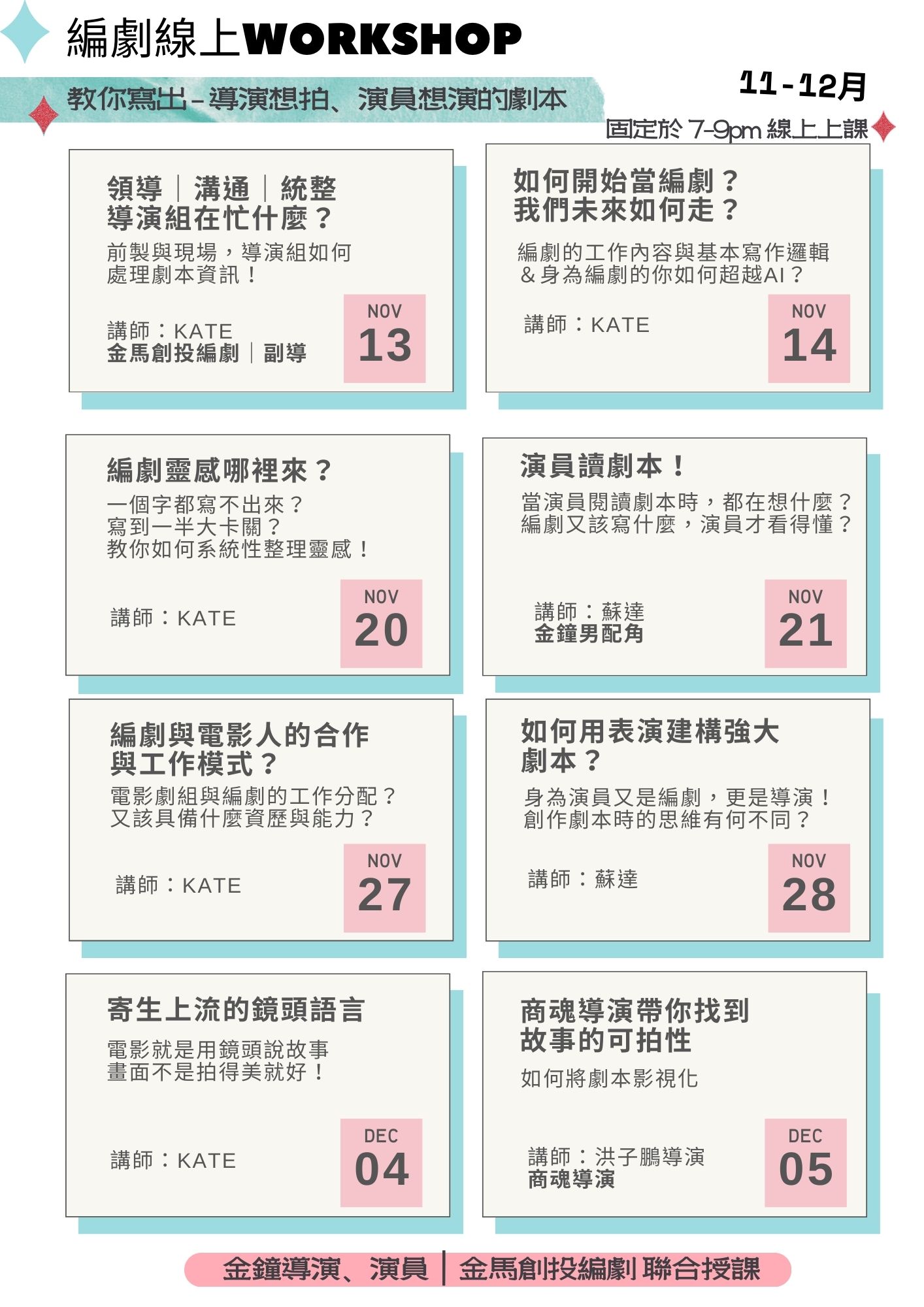 商魂導演、金鐘演員、金馬創投編劇聯合授課!